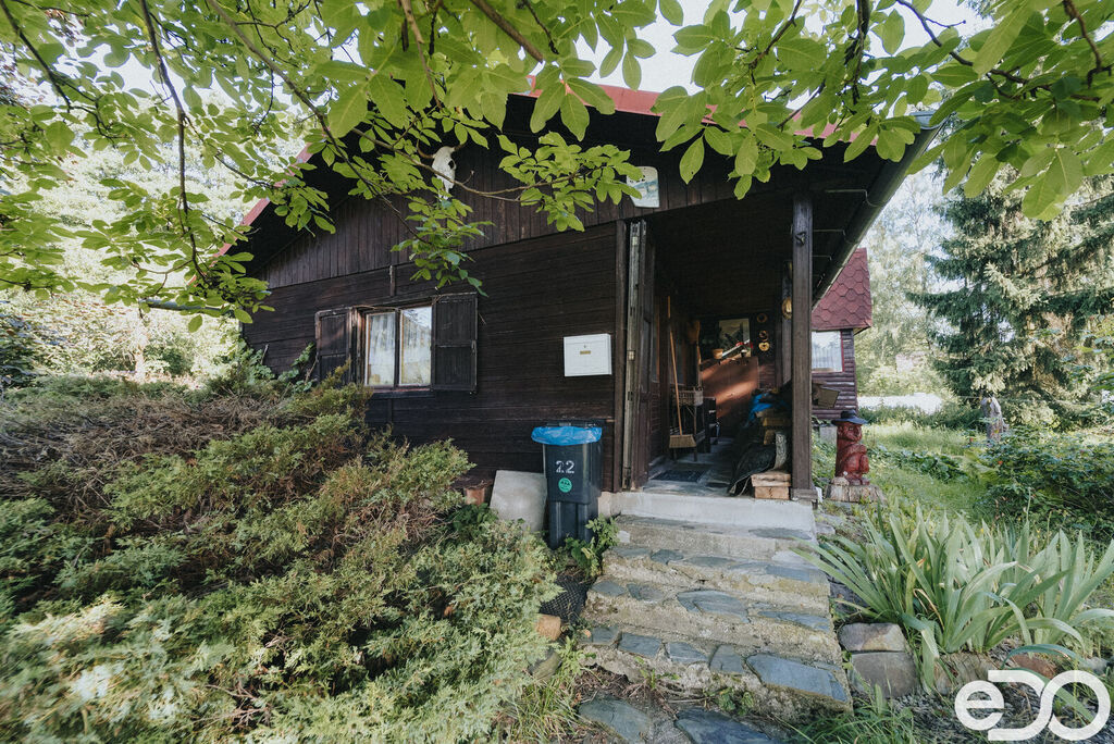Na pozemku stojí malá dřevěná chatka k rodinné rekreaci, která se těší nádhernému výhledu až na Javorník.