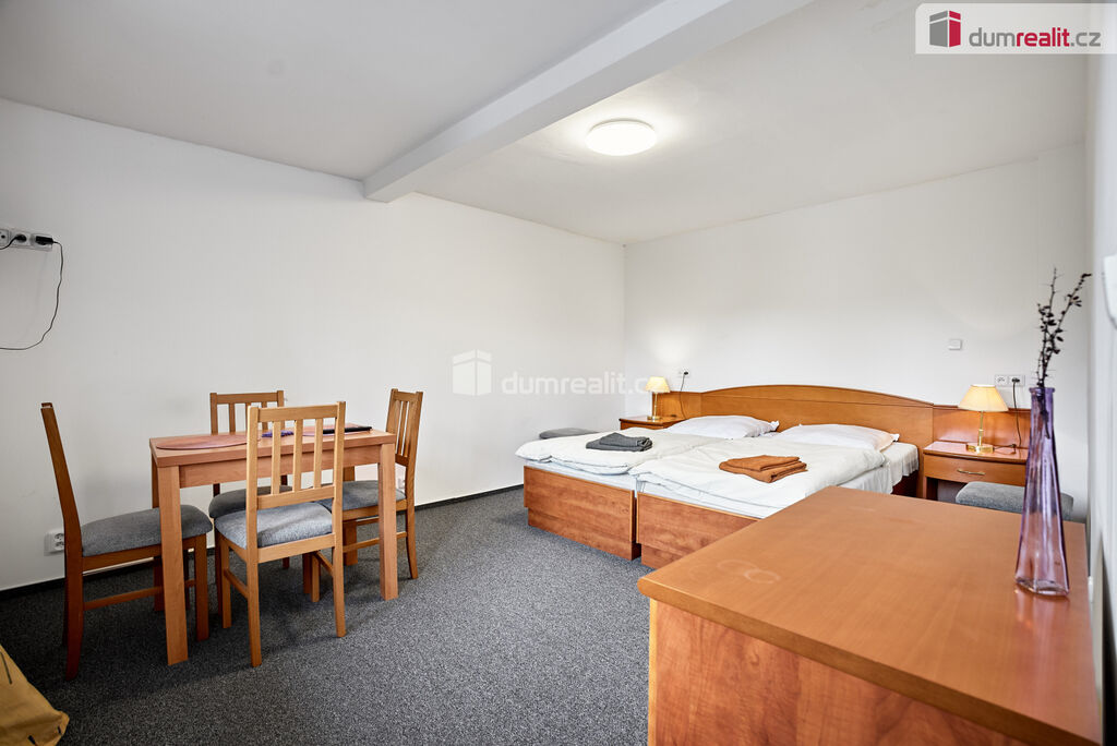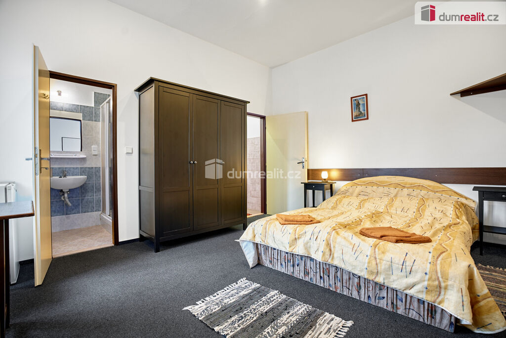Dumrealit.cz Vám zprostředkuje prodej zavedeného penzionu v krušnohorské obci Nejdek. Dům byl v roce 1997 kompletně zrekonstruován, je napojen na všechny inženýrské sítě a vytápěn je plynovým kotlem. V přízemí jsou dva samostatné pokoje se sociálním zařízením a jeden s kuchyňkou, dále garáž, prádelna a vstup do sklepa, kde je umístěn plynový kotel se zásobníkem. V 1. patře domu jsou 3 samostatné dvoulůžkové pokoje s příslušenstvím. Ve 2. patře je byt 2+1 (4 lůžka), který byl vybudován před 5 lety. V tomto patře je i vstup na půdu, která je využívána jako odkládací prostor. Za domem je terasovitá zahrada s možností vstupu do lesa na Křížovou cestu. Veškerá potřebná občanská vybavenost je v obci snadno dostupná. V blízkém okolí je řada lyžařských a sportovních středisek, turistické, běžecké a cyklistické trasy. Tuto nemovitost lze hradit úvěrem, který Vám rádi pomůžeme vyřídit v našem finančním centru. Vzhledem k tomu, že před zadáním do inzerce nebyl vyhotoven PENB, je tento byt v souladu s platným zákonem zařazen do energetické třídy G. Ev. číslo: 648655.