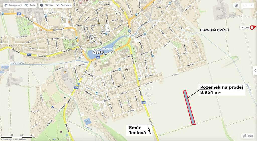 Ve výhradním zastoupení majitelů Vám zprostředkujeme možnost získat pozemek o celkové výměře 8.954 m2 nacházející se v Poličce, poblíž silnice směrem na Jedlovou, nedaleko vyhlášených rybářských přehrad.