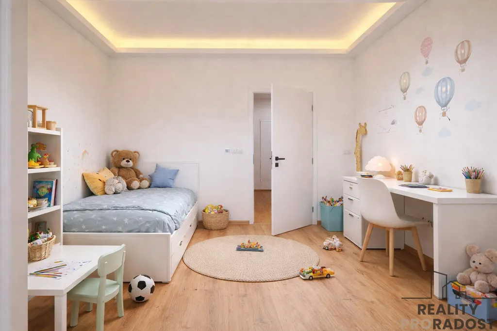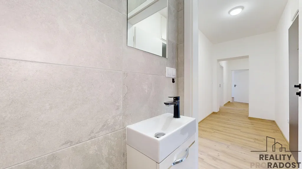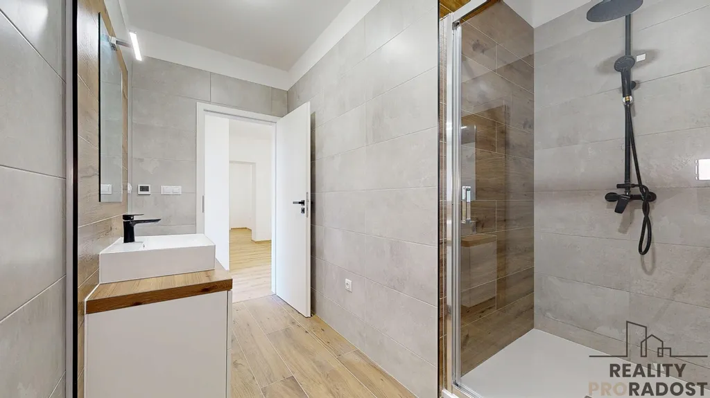 Prosvětlený 3+KK s orientací na západ. Užitná plocha 74,33 m2. 2 pokoje, samostatné WC, koupelna se sprchovým koutem. V chodbě dostatek prostoru na vestavěné skříně. Vytápění podlahovým topením, vlastní bojler na ohřev vody, klimatizace.