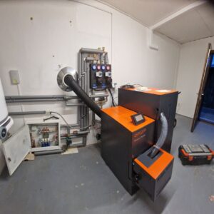 Vytápění zajišťují krbová kamna s výměníkem, která dotvářejí příjemnou atmosféru.
