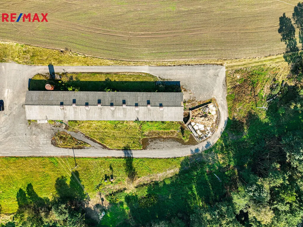 Tento komplex se skládá z bývalého kravína a seníku, případně skladu, který nabízí obrovský potenciál pro investici s využitím pro zemědělství, případně jako výrobní či skladovací prostory. S dobrou stavební konstrukcí a přízemním zděným typem budov se rozprostírá na užitné ploše 976m², druhá stavba blíž k silnici na užitné ploše 554 m² a celkovou plochou parcely 14.066m², zde mohou investoři nalézt skvělou příležitost k rozvoji a růstu svého portfolia.