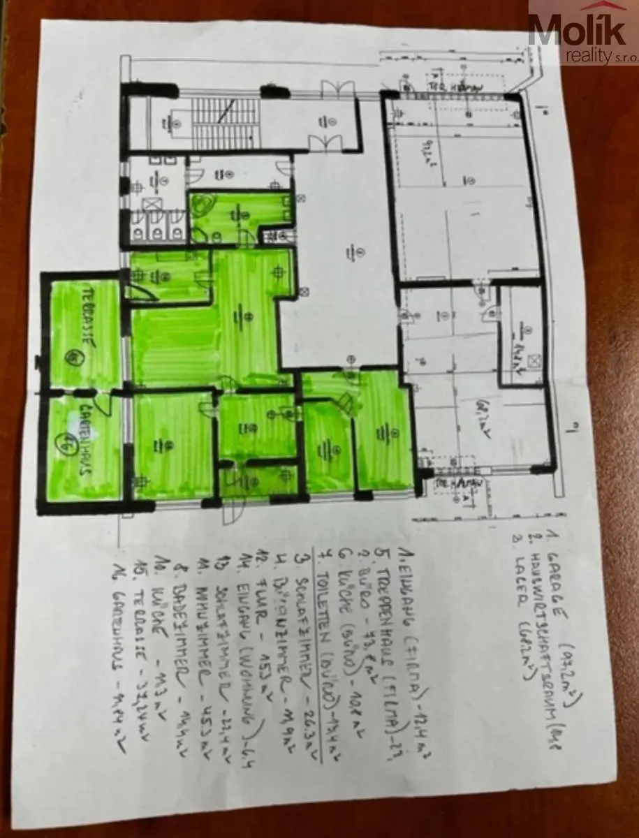 Zbylá část 1. NP byla využívána jako provozovna s kanceláří , sklady a garážemi.