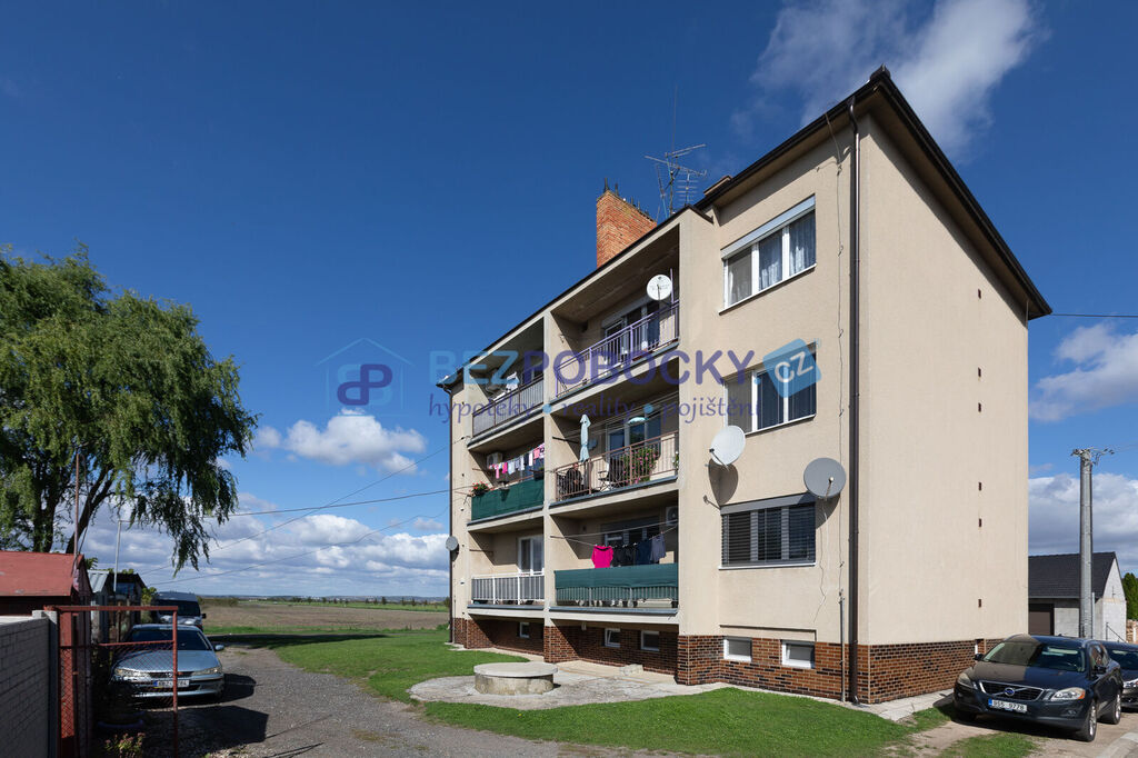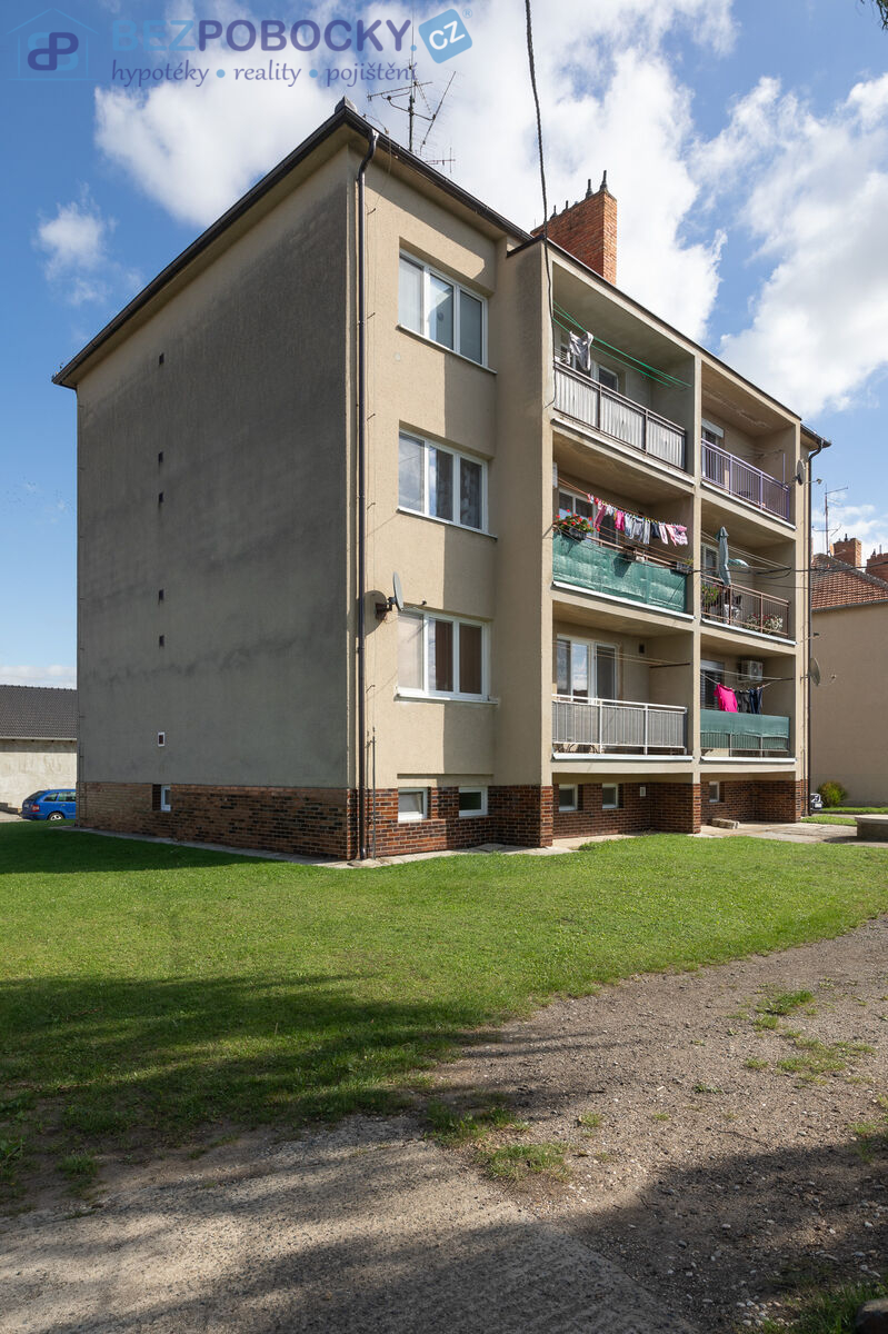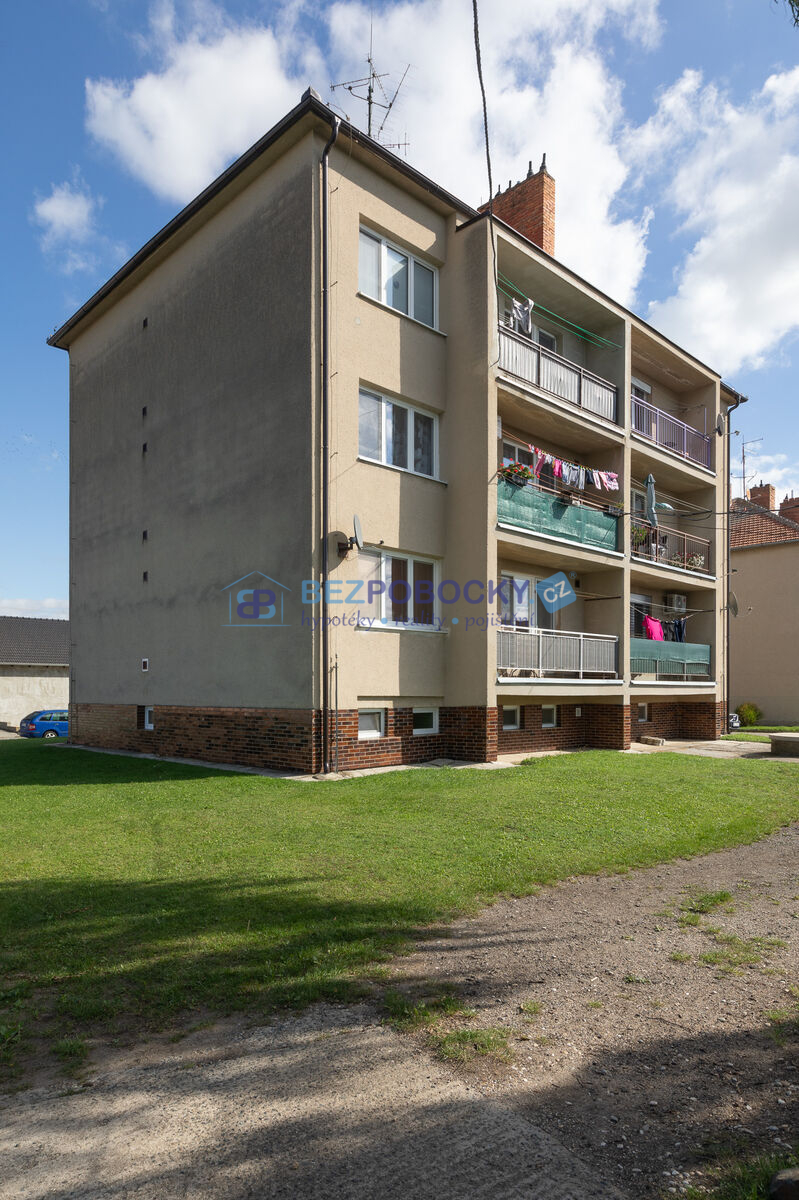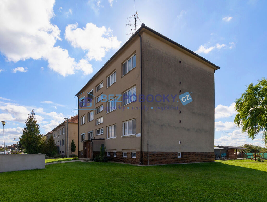Prodej bytu 3 + 1, 80m² s balkonem 4m², 3.NP v bytovém domě ve Velkých Bílovicích. K bytu náleží dvě místnosti v suterénu o rozloze 13m² a 6,5m². K nemovitosti patří i oplocená zahrada 152 m² s ovocnými stromy. Součástí nemovitosti je také plechová garáž. Možné dojíždění do Brna, Břeclavi, Hodonína.