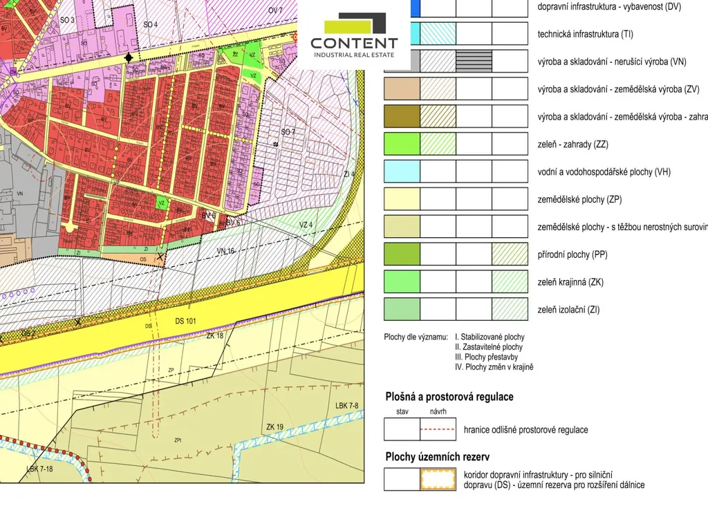- jedná se o budoucí pokračování stávající průmyslové zóny, kde převažují sídla společností s příslušnými skladovacími nebo výrobními halami.