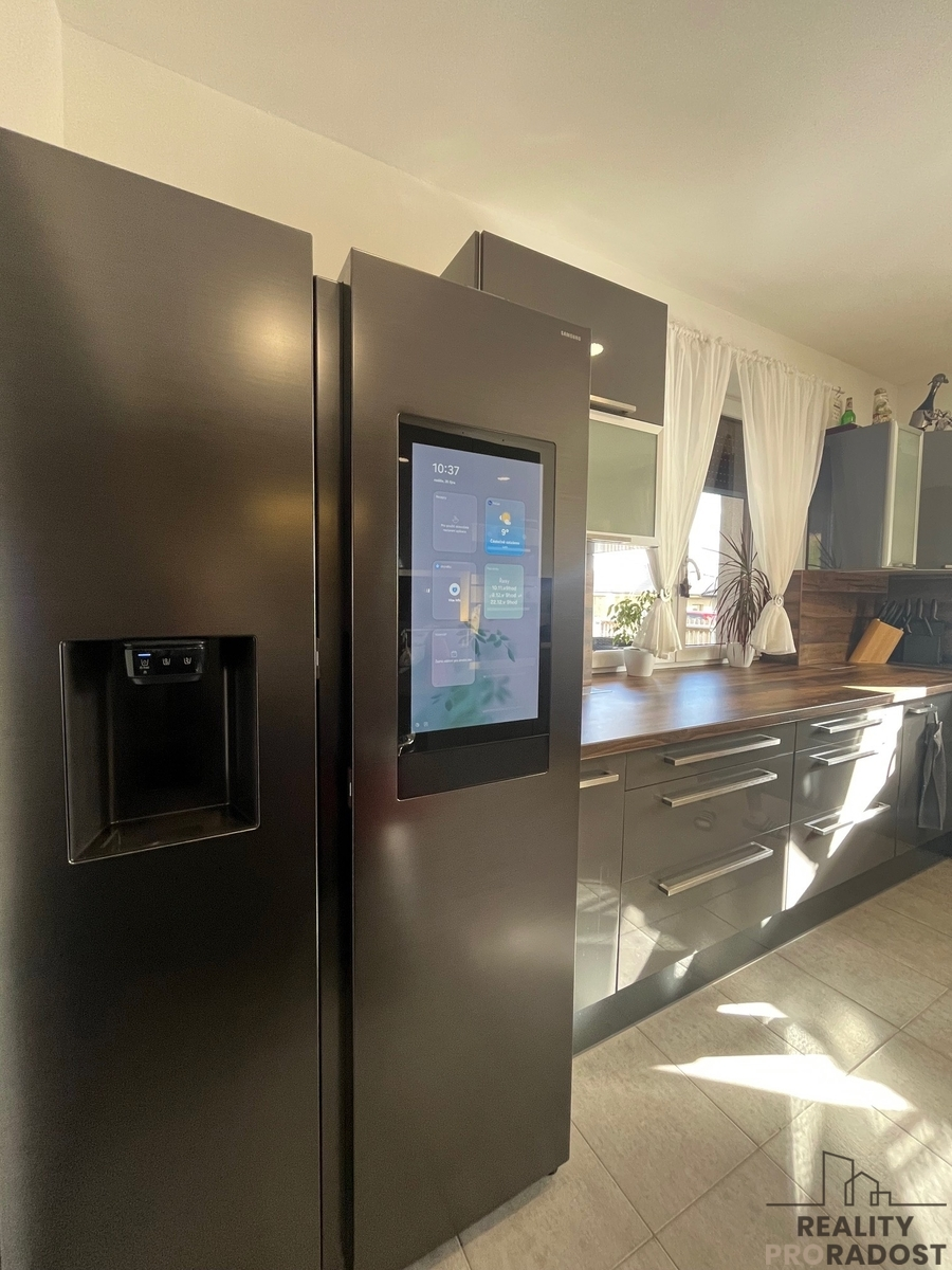 Moderně vybavená kuchyně s dostatkem úložného prostoru a kvalitními spotřebiči, která potěší každého kuchaře nebo kuchařku.