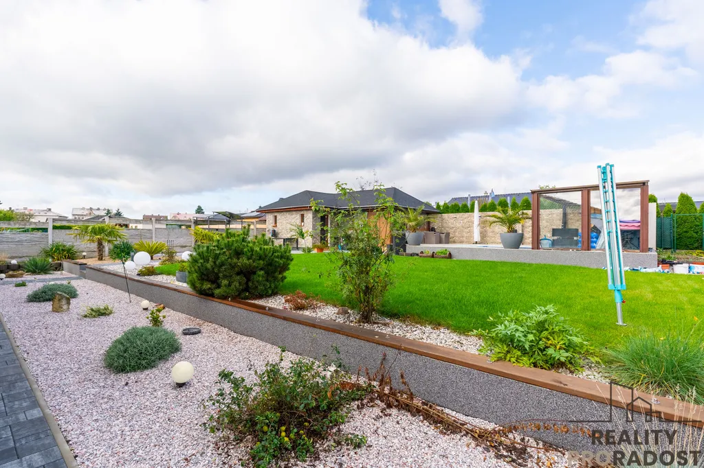 Udržovaná zahrada: Ideální místo pro relaxaci, grilování s přáteli nebo hry s dětmi.