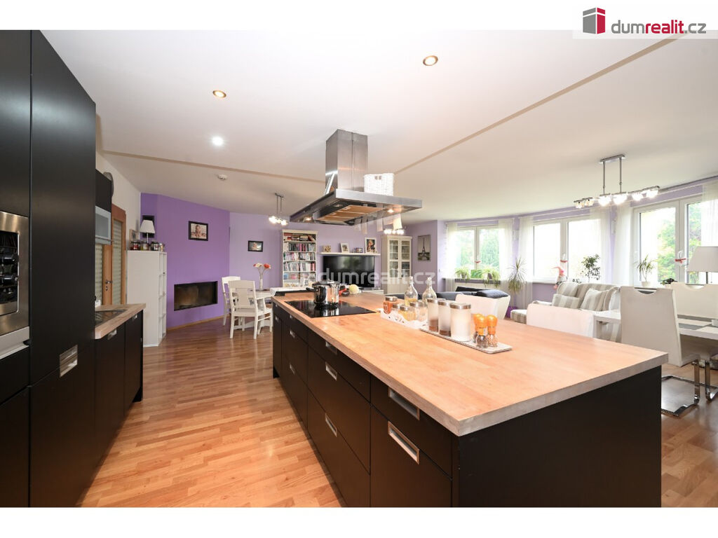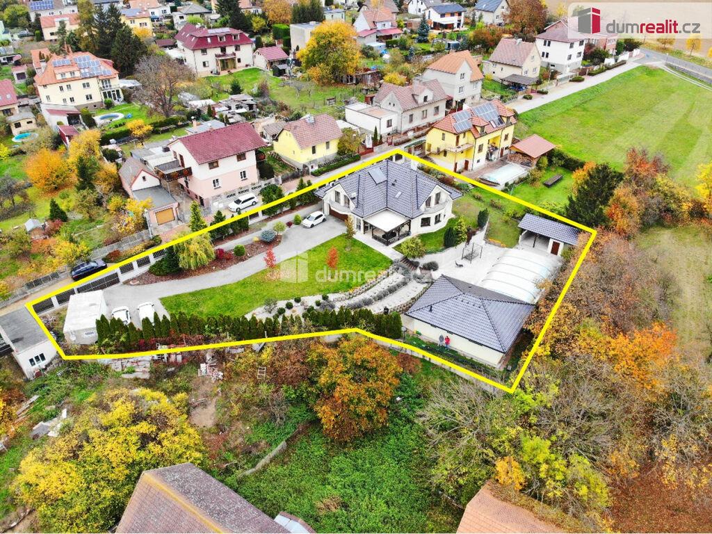 Hledáte prostorný rodinný dům v Praze, ideálně dvougenerační s dalším zkolaudovaným domem na zahradě? Mám zde pro vás exkluzivní nabídku rodinného domu z roku 2009, v ulici K Úvozu, Praha 5 – Lochkov a dalším domem 3+kk, který je nově zkolaudován a má číslo popisné (3+kk). Tento moderní dům s dispozicí 6+kk a dvougaráží, s pozemkem o velikosti 1868 m², se zděným, samostatným domkem s dispozicí 3+kk (62 m²) vhodným pro návštěvy, rodiče či na podnikání, s velkým, krytým bazénem (10 x 5 x 1,5 hloubka), garáží pro motorky či další auto (22 m²), zahradním domkem (9 m²) s technikou pro bazén a s velkou střešní pergolou. Tato nemovitost nabízí vše, co hledáte od svého budoucího bydlení. Hlavní dominantou zahrady je zděný dům z roku 2009 s dispozicí 6+kk, kterou v přízemí tvoří: prostorný obývací pokoj spojený s kuchyňským koutem a krbem, se vstupem na zastřešenou terasu s jihozápadní orientací, se vstupem do zimní zahrady a vstupem na zahradu, dále je v přízemí centrální chodba se zádveřím, sklad potravin pod schodištěm, koupelna s WC, pracovna / pokoj pro návštěvy. Po schodišti se dostaneme do 1.patra / 2 NP, kde je umístěná velká ložnice se vstupem do vlastní koupelna s WC, se vstupem na balkon a výhledem do zahrady, dále ložnice (nyní fitness) také se vstupem na balkon, šatna, centrální velká koupelna s vanou a sprchou, 2 x umyvadlem, samostatné WC, kotelna s plynovým kotlem a prostorem na pračku a sušičku a 2 x identický dětský pokoj se vstupem na společný balkon. Topení domu zajištuje centrální plynový kotel se zásobníkem na vodu, ohřev vody v letních měsících zajištují dva solární panely na ohřev vody na střeše. Na pozemku je dále umístěn plnohodnotný nově zkolaudovaný domek s dispozicí 3+kk (62 m²), s vlastním pozemkem 837 m², sítěmi a přístupem. Přímo u bazénu s prostorem na lehátka, trampolínu atd.. dále zahradní domek s krytým posezením a zděná garáží vjezdu na pozemek. Parkování je plnohodnotné, v domě 6+kk je dvojgaráž, další 2-4 auta mohou parkovat před garáží, dvě auta pak u vjezdu na zahradu a další auto / motorky pak do zděná garáže. Jak dům 6+kk, tak i domek 3+kk mají vlastní elektroměr vč. kapličky, vlastní vodovod, odpady do kanalizace (zahradní domek má čerpadlo do tlakové kanalizace). Menší domek 3+kk je aktuálně také vytápěn vlastním plynovým kotlem a je zcela nezávislý na domě 6+kk. Tato nemovitost je v osobním vlastnictví, lze ji financovat hypotečním úvěrem, je v TOP stavu a připravena dle dohody k nastěhování. V ceně domu a domku jsou kuchyně + spotřebiče, vestavěné skříně a osvětlení, ostatní dle dohody – více info v RK. V okolí domu je absolutní klid, zastávka MHD (bus č. 120 – Lochkov je 2 minuty od domu, potraviny také do 5 minut pěšky. Kompletní prezentace s více foto je na našem webu. Ev. číslo: 649217.