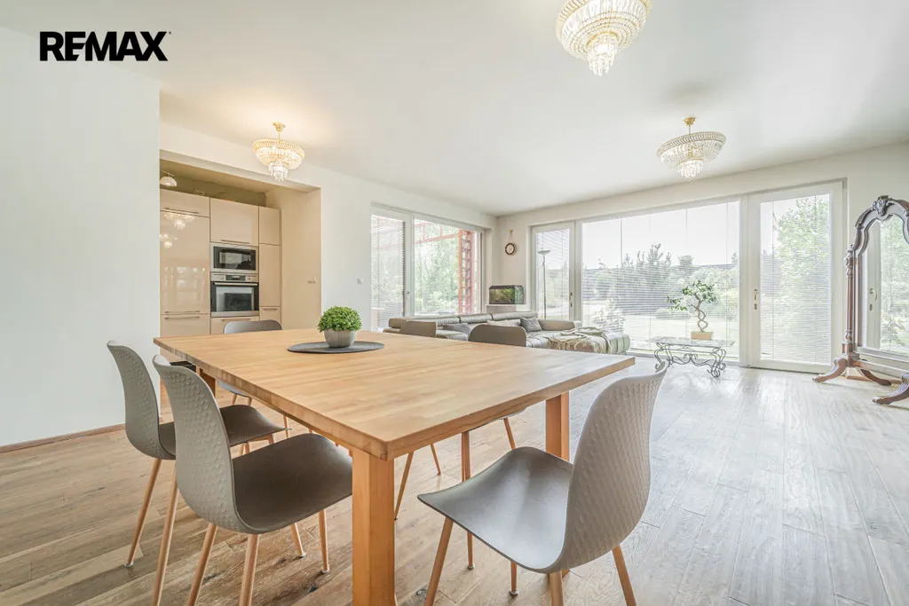 Nabízím Vám k prodeji útulný a komfortní dům 152 m2, s pozemkem 742 m2. Dům se nachází v tiché a klidné části Prahy 4, Cholupice. Všechny ložnice jsou umístěny samostatně, takže každý člen rodiny má svůj vlastní prostor. Prostorný obývací pokoj poskytne příležitost pro návštěvu celé rodiny, přátel nebo příbuzných. V teplejších měsících můžete večeřet a užívat si klidu v prostorné terase nebo si přečíst knihu v pohodlném křesle. S rodinou nebo přáteli si také můžete připravit lahodné steaky na grilu. Z obývacího pokoje nabízí velká okna krásný výhled do vaší zahrady. V přízemí se nachází bezbariérový vstup, dále malá ložnice a koupelna, což může velmi vyhovovat například starším rodičům. Ve druhém patře jsou tři samostatné ložnice a prostorná koupelna s oddělenou toaletou. Z oken dvou ložnic je nádherný výhled do přírody a krásné rostliny vaší zahrady. V horkých letních dnech můžete doma vytvořit chladnou atmosféru pomocí klimatizačního systému. Na pozemku jsou zasazené nádherné okrasné stromy, květiny a zelený nádherný trávník, na kterém je zavedeno automatické zalévání. K domu náleží garáž a dva parkovací místa před domem.V domě je zaveden centrální vodovod i kanalizace, vytápění je plynové. Provozní náklady, cca 10 000 kč měsíčně.