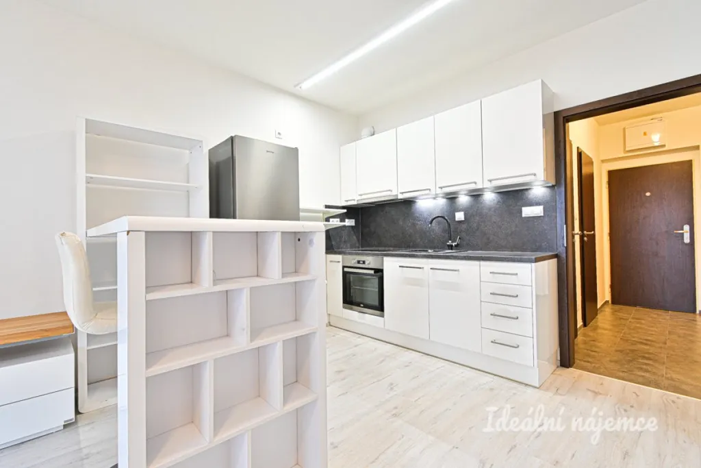 Byt se nabízí kompletně vybavený moderním nábytkem. Kuchyňský kout disponuje varnou deskou, digestoří, troubou, myčkou, novou lednicí, s mrazákem a součástí je i barové sezení. Ložnice je zařízena prostornou šatní skříní a manželskou postelí s kvalitní matrací. Součástí koupelny je vana, umyvadlo a zcela nová pračka. Toaleta je samostatně oddělená.