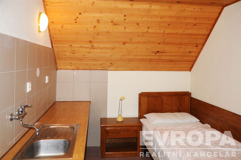 Podkroví: 8×1 lůžkový pokoj s umyvadlem a sprchou, 2 x WC na chodbě