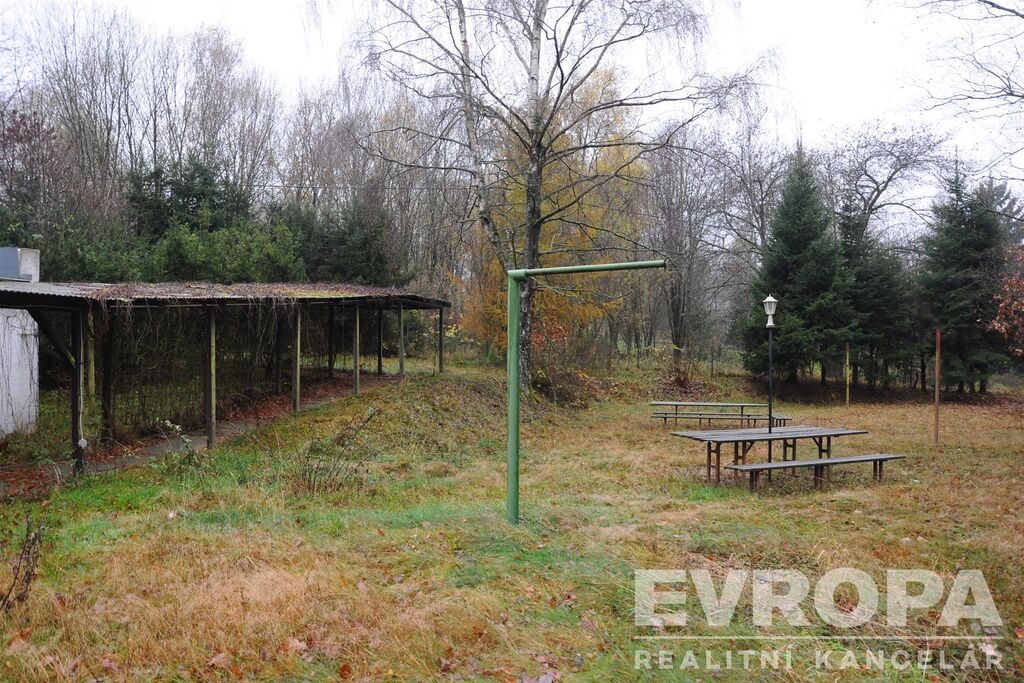 Velká zahrada 2242 m2. Letní pavilón s kapacitou 50 osob, (nutná rekonstrukce) uzamykatelný prostor pro kola. Dále pozemek zapsaný v KN jako vodní plocha 443 m2. Uzamykatelné parkoviště.