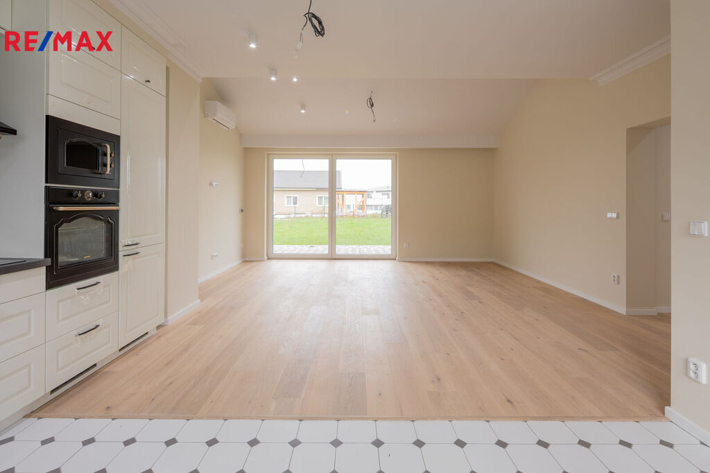 Vstupte do domu, který vás přivítá svou vzdušností a teplem. Srdcem přízemí je prostorný obývací pokoj propojený s moderní kuchyní. Tento otevřený koncept vytváří ideální místo pro setkávání s rodinou i přáteli. Kuchyně je vybavena špičkovými vestavěnými spotřebiči, které zpříjemní každodenní vaření, a její součástí je také praktická komora pro uložení potravin a dalších potřeb.