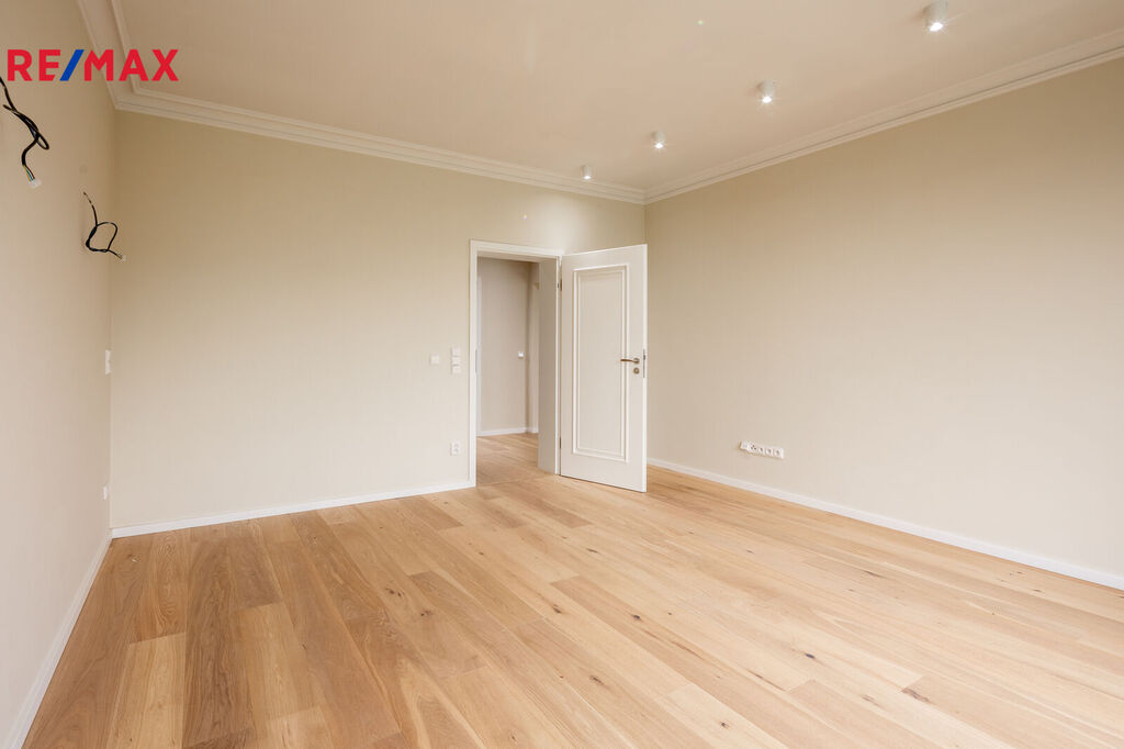 Z obývacího prostoru i ložnice vedou francouzská okna přímo na terasu. Představte si, jak si užíváte ranní kávu na terase nebo večerní relaxaci s výhledem na zeleň – to vše v naprostém soukromí. Na tomto patře je k dispozice pokoj pro hosty a také koupelna s WC.