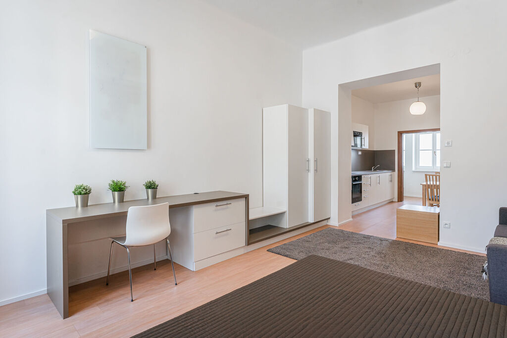 Jedná se o bytový dům se dvěma nebytovými prostory v přízemí domu s přímým vstupem na ulici, šesti byty s dispozicemi 1kk a prostorným bytem 3kk ve čtvrtém patře s klimatizací a dvěma koupelnami. Součástí je společný dvorek, který je pečlivě upravený a může v budoucnu sloužit pro relaxaci nájemců. Dům je podsklepený, nyní nevyužito. Všechny prostory jsou pronajaty za tržní nájemné. Byty jsou plně vybaveny nábytkem a lze zvážit obratem provozování krátkodobých pronájmů, které by velmi jednoduše navýšily výnosnost.