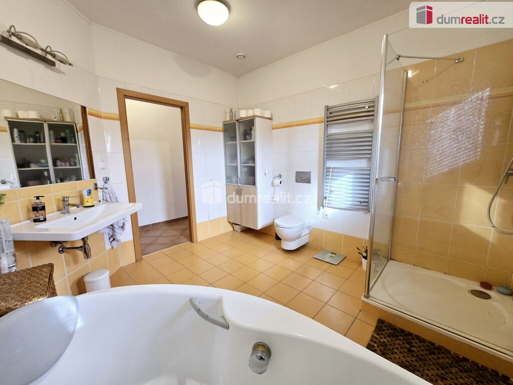 prodej rodinného domu ve Staré Boleslavi, která je součástí dvojměstí Brandýs nad Labem-Stará Boleslav. Ne, náhodou se toto město pravidelně umisťují v TOP 5 městech v ČR, podle indexu kvality života a bydlení. Dům je dispozičně řešen jako 4+kk a disponuje užitnou plochou přes 140 m² a pozemkem o rozloze cca 649 m². V případě potřeby lze upravit dispozici dle vlastních potřeb. Nosné stěny v domě jsou pouze obvodové. Díky tomu lze všechny vnitřní příčky upravit a také v případě nutnosti řešit výměnou vazníků rozšíření prostoru o dalších cca 90m². Součástí pozemku je také zahradní domek o velikosti 24m² s mezipatrem , sloužící pro uskladnění všeho potřebného od kol, lyží ,sekačky, kol pro auta. Dále je na pozemku zkolaudovaná studna, sloužící jako vlastní zdroj vody pro zalévání zahrady. Zde je již vybudována závlaha. Dům byl kolaudován roku 2008 a postaven z veloxu o tloušťce 37 cm s vloženou 15cm tepelnou izolací. Výška stropů v domě je 2, 62 m². Vnitřek domu je uspořádán následovně: přes zádveří (jsou zde již vybudované vestavěné skříně) navazuje prostorná chodba, odkud jsou přístupné všechny místnosti v domě. Konkrétně se bavme o dvou dětských pokojích/ložnicích, technické místnosti/prádelně a koupelny, která je společná s toaletou. Najdeme zde sprchu i rohovou vanu. Z chodby se rovněž dostaneme do velkoryse řešeného obývacího pokoje s kuchyňským koutem, který byl prakticky rozdělen na několik zón. Současní majitelé zde vybudovali prostor pro trávení času u televize, tedy klasický obývací pokoj, kuchyňský kout s dostatkem prostoru i pro velké kuchtíky, ale také jídelní, nebo pracovní kout. Ze všech obytných místností vede přímý vstup na terasu/ zahradu. Na oknech jsou nainstalované venkovní rolety. Vytápění v domě je řešeno, jako podlahové teplovodní, tedy bez radiátorů. Teplotu v jednotlivých místnostech lze regulovat termostaty. Dům pro ohřev vody a rekuperaci využívá jednotku LWA 303 od firmy Stiebel Eltron. Dům se vyznačuje dostatkem soukromí a vskutku jedinečnou atmosférou. Pokud si přejete bydlet v klidu a mít kolem sebe dostatek zeleně, přesto být součástí města s výbornou dostupností do Prahy, pak je tento dům právě pro Vás. V Brandýse n/L a St. Boleslavi najdete vše co k životu potřebujete a bude Vás činit šťastnými. Poloha domu je velmi dobře položena v rámci města. Pěšky se dostanete do centra za 7 minut. V centru je základní škola, obchody, atd. Mateřská škola ve vzdálenosti 2 minut od domu. Pokud jste milovník přírody, ať zvolíte koupání na Proboštských jezerech, nebo procházku lesem, máte to téměř za rohem. Jestli máte rádi sporty – golfové hřiště 5minut, tenisový a squashový kurt 1min. od domu pěšky. Velkou výhodou celé lokality je, že dům je umístěn ve slepé ulici.
