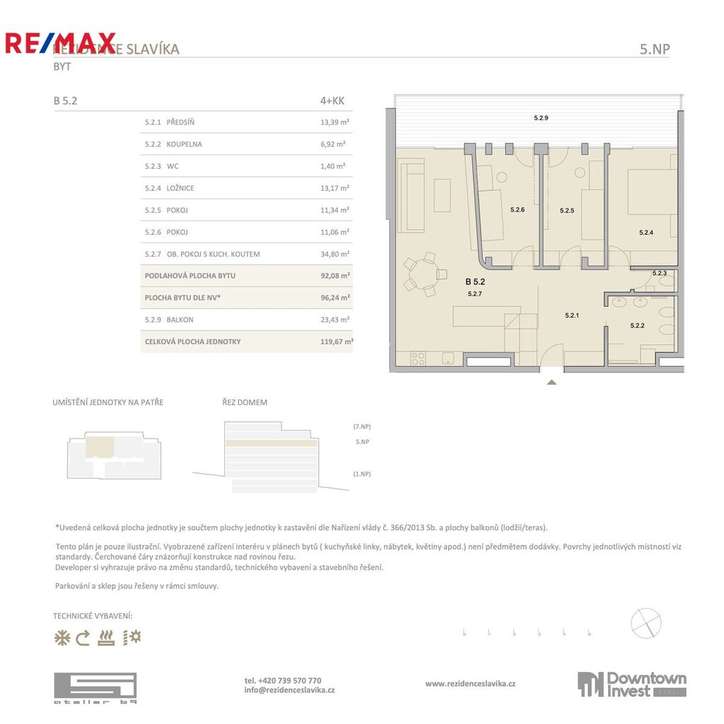Luxusní a moderní 7-podlažní bytový dům s 56 jednotkami pro bydlení o dispozicích od 1+kk až 4+kk s výměrou od cca 40 m2 po rozměrově nadstandardní bydlení o výměře 116m2 nabídne vysoký standard technologického vybavení současně s ohledem na ekologiia udržitelnost. Velkou výhodou je bezprostřední blízkost zeleně díky umístění na hraně rozsáhlého vnitrobloku se vzrostlými stromy. Díky velkým balkonům je zajištěno i pasivní stínění u bytů do zahrady.