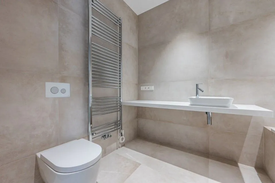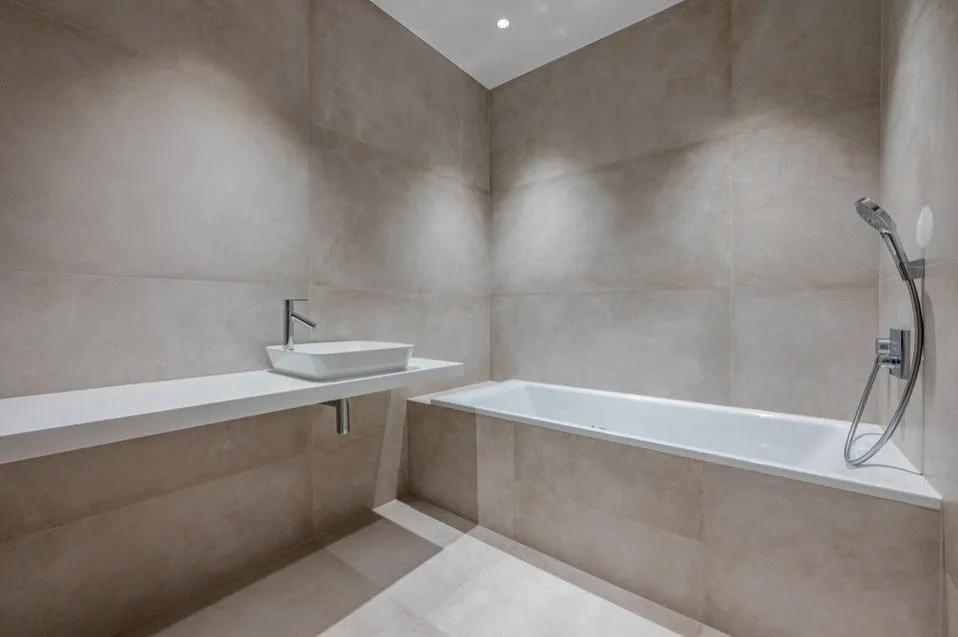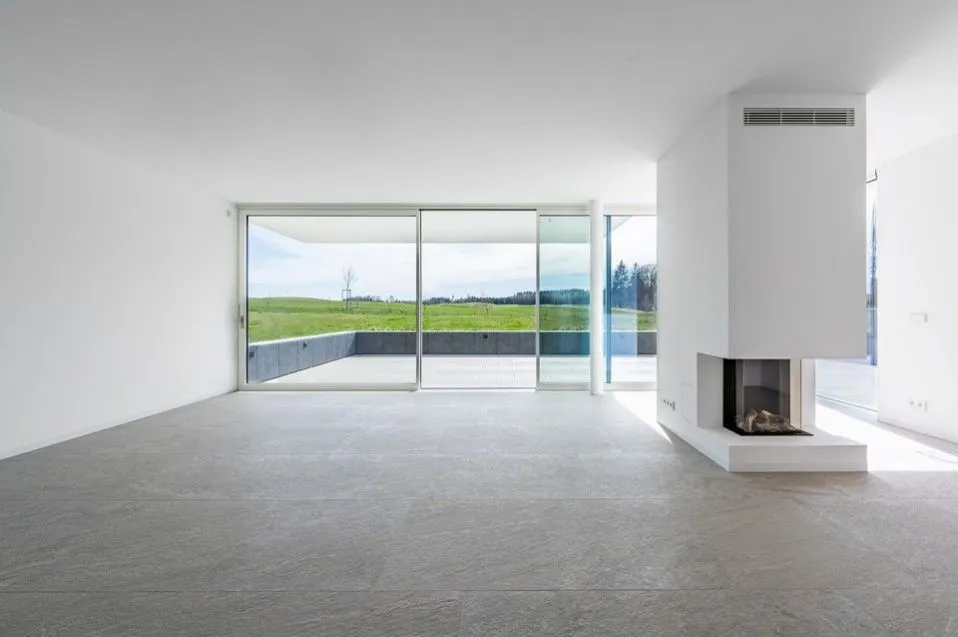 Vybavení zahrnuje: velkoformátová hliníková okna s izolačními trojskly po celé délce obývací části a možností posuvného otevíraní v celé délce, velkoformátová dlažba a obklady v nadčasové barvě designu, bezpečnostní vstupní dveře, klimatizace.