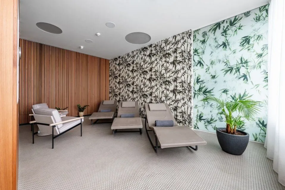 Dispozice bytu 3kk, s terasami zahrnuje otevřený, velkoryse prostorný koncept obývacího pokoje s kuchyním krbem a přímým výstupem na prostornou, jihozápadně orientovanou terasu s výhledy na přilehlé golfové hřiště, dále hlavní ložnice se šatnou, sen suit koupelnou ( vana), další ložnice, obě dvě ložnice disponují přímým výstupem na privátní terasu. Vstupní hala se samostatnou toaletou zvlášť. K dispozici dvě koupelny (jedna se sprchovým koutem a vanou, druhá s vanou).
