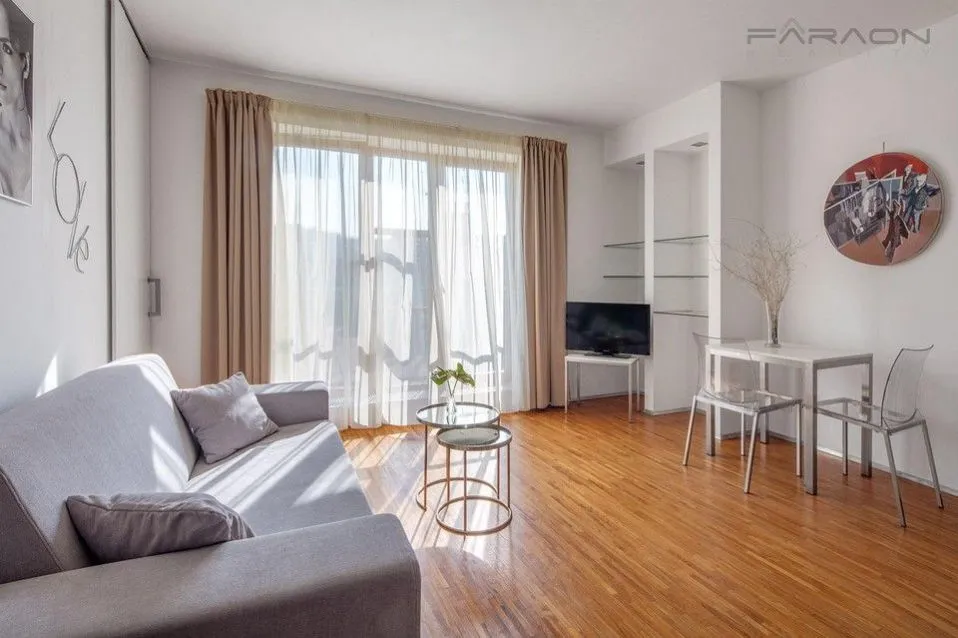 Pronájem plně zařízeného servisovaného 2+kk apartmánu o velikosti 45 m2 v budově s výtahem. Apartmány jsou rozděleny na samostatnou ložnici s dvoulůžkem, skříní či šatním prostorem a obývací zónou s rozkládacím sofa pro další 12 osoby, v každém apartmánu je vybavená kuchyňská linka, jídelní kout, některé z apartmánů mají myčku na nádobí, koupelna se sprchovým koutem či vanou a odděleným WC. TV/SAT a WIFI. Byt se nachází v těsné blízkosti tram zastávky U Zvonu, 5 min na metro Anděl.