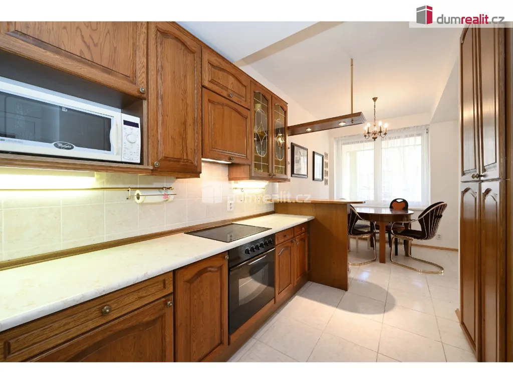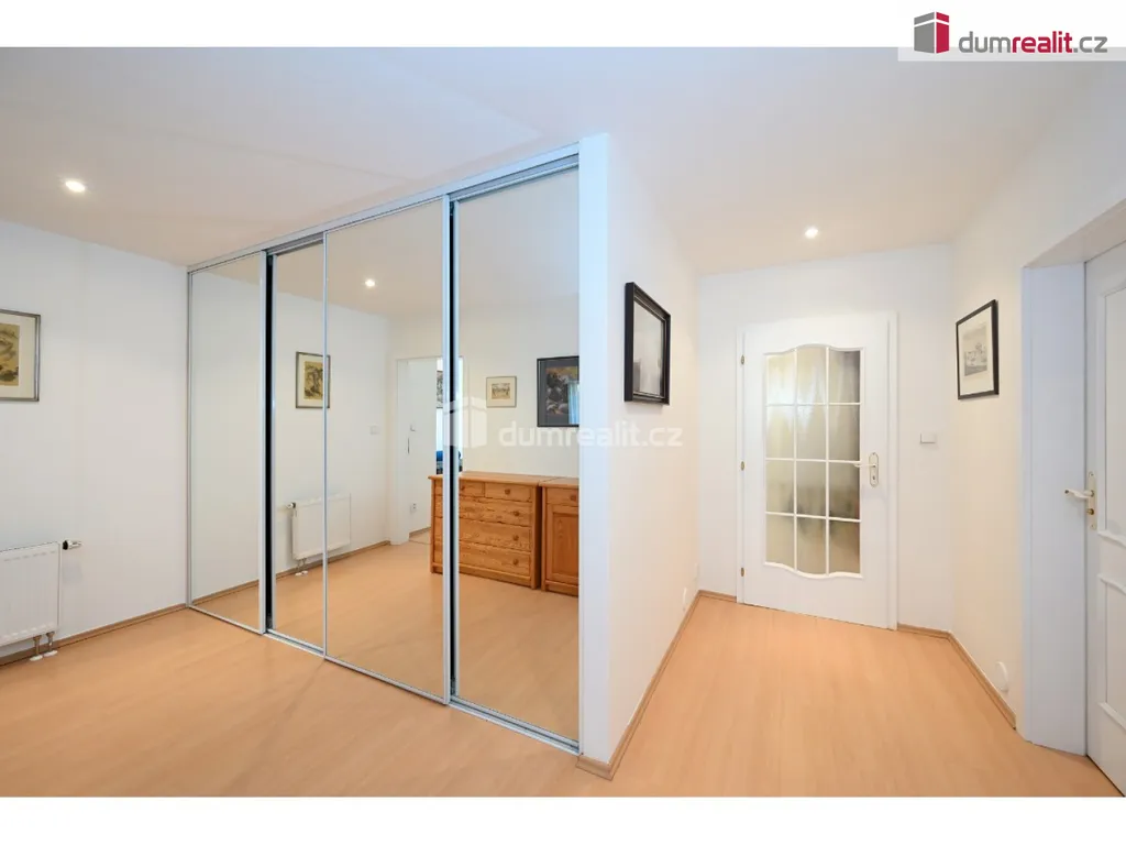 Hledáte opravdu velký byt, ideálně v Praze 5 – Malvazinky, nedaleko parku, v absolutním klidu a rodinném prostředí? Právě pro vás zde mám byt o velikosti 146,8 m² s lodžií 8,1 m², sklepem 5,7 m² a parkovacím stáním 13,8 m² přímo v domě, který má vlastní soukromou zahradu o velikosti 1666 m². Tento byt s vlastním plynovým krbem je umístěn v 1 .patře pětipatrového bezbariérového domu z roku 1999, nyní s novým výtahem. Aktuální dispozice bytu je 3+1, velmi jednoduchou úpravou nový majitel docílí dispozice 4+kk – viz 3d plánky v prezentaci. Obývací pokoj tohoto bytu je dostatečně velký, aby zde v budoucnu byla umístěna i kuchyňská linka s jídelnou (50,8 m²), místo dnešní kuchyně (16,3 m²) lze vytvořit ložnici, dále je v bytě prostorná hala (14,6 m²) s bezpečnostním dveřmi a alarmem, dva pokoje v zadní části bytu (17 m² + 16,7 m²), chodba / šatna (14 m²) s vestavěnou skříní přímo u pokojů, nadstandardně velká koupelna (10 m²) s rohovou vanou, sprchovým koutem, umyvadlem, WC a bidetem. U vstupní haly je samostatné WC (1,9 m²), komora (1,2 m²) a technická místnost (4,3 m²) s plynovým kotlem, zásobníkem na vodu a prostorem na pračku a sušičku. Dispozice bytu je velmi praktická, byt je v top stavu, vše plně funkční a ihned k užívání – bez nutnosti dalších investic. Pro nového vlastníka se přímo nabízí změna dispozice na 4+kk – více info v RK. K bytu patří sklep (5,7 m²) a parkovací stání v suterénu domu. Zahrada okolo domu je oplocena, je soukromá – pouze pro vlastníky bytů. Vytápění bytu je pomocí vlastního plynového kotle – velmi praktické. Kompletní prezentace vč. více fotografií je na našeich stránkách. V okolí domu je absolutní klid – rodinné prostředí, nedaleko jsou školy, školky. Přímo za domem je vstup do lesoparku Šalamounka a Měchurka, zastávka MHD Malvazinky je 4 minuty pěšky a přímo u zastávky je obchod Albert. Velmi doporučuji všem, kteří hledají velký byt v klidné části Prahy 5 s možností rodinného bydlení. Ev. číslo: 649544.