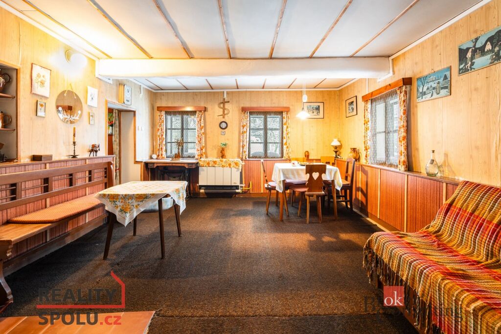 Uvnitř vás přivítá příjemná atmosféra – ideální pro romantické večery u krbu, rodinné obědy u velkého stolu nebo klidné chvíle s knihou a výhledem do zahrady.