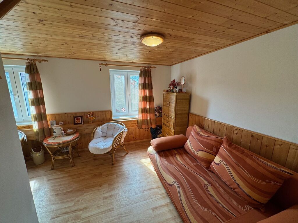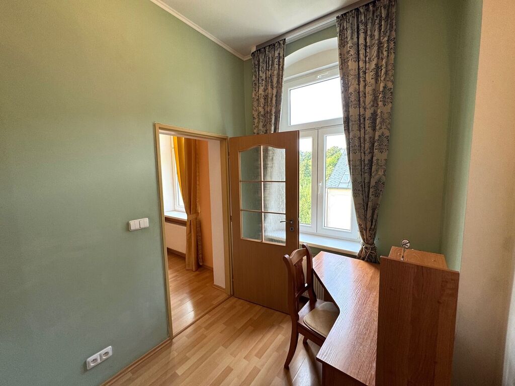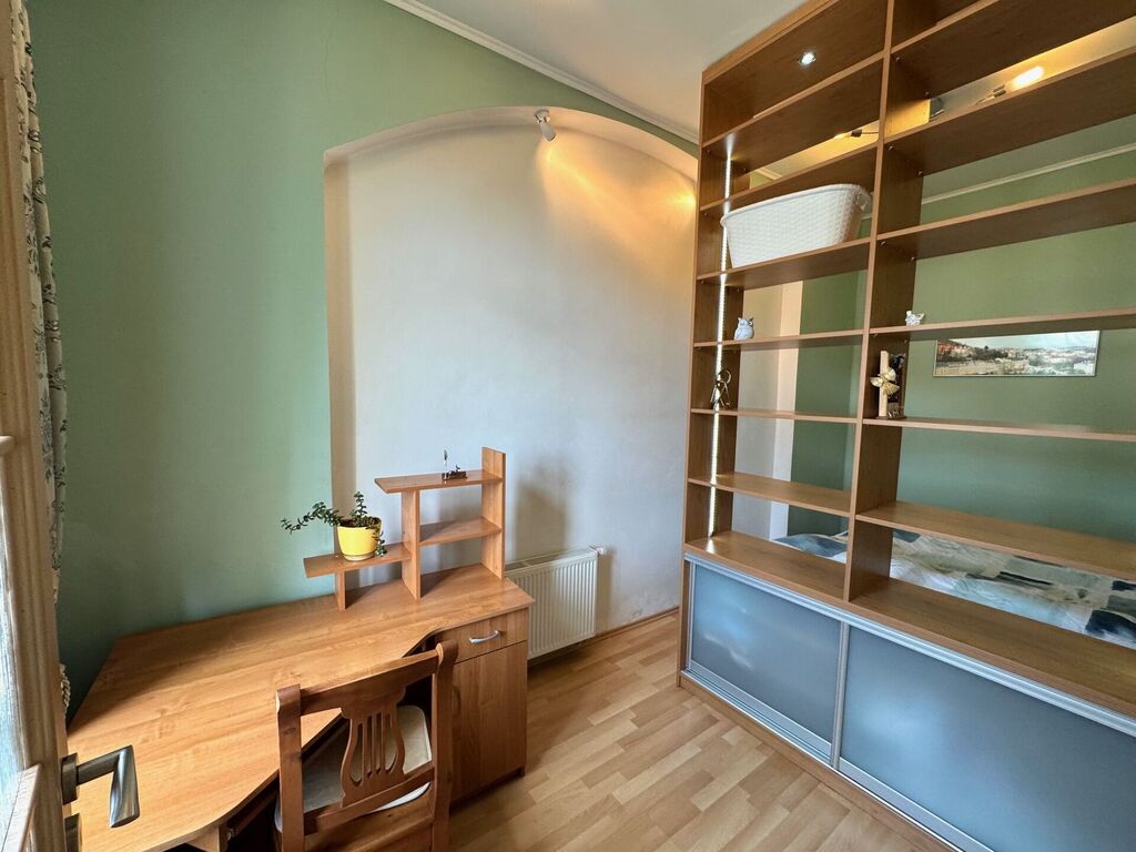 K bytu náleží opravená zařízená mansarda nacházející se ve 3. patře (13,04 m2). V mezipatře je koupelna se sprchovým koutem a WC (2,5 m2).