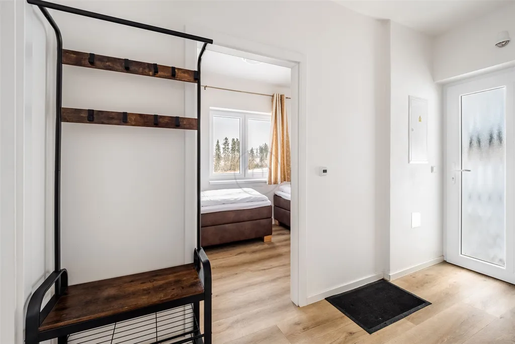 Tento rekreační dům č. 46 je součástí nového luxusním resortu Lakeside Village, přímo u břehu Lipna. Nachází se v poslední řadě, v dostatečném soukromí přímo u lesa, na nejvyšším bodě resortu, s nejhezčím výhledem na zátoku a Kovářovský poloostrov.
