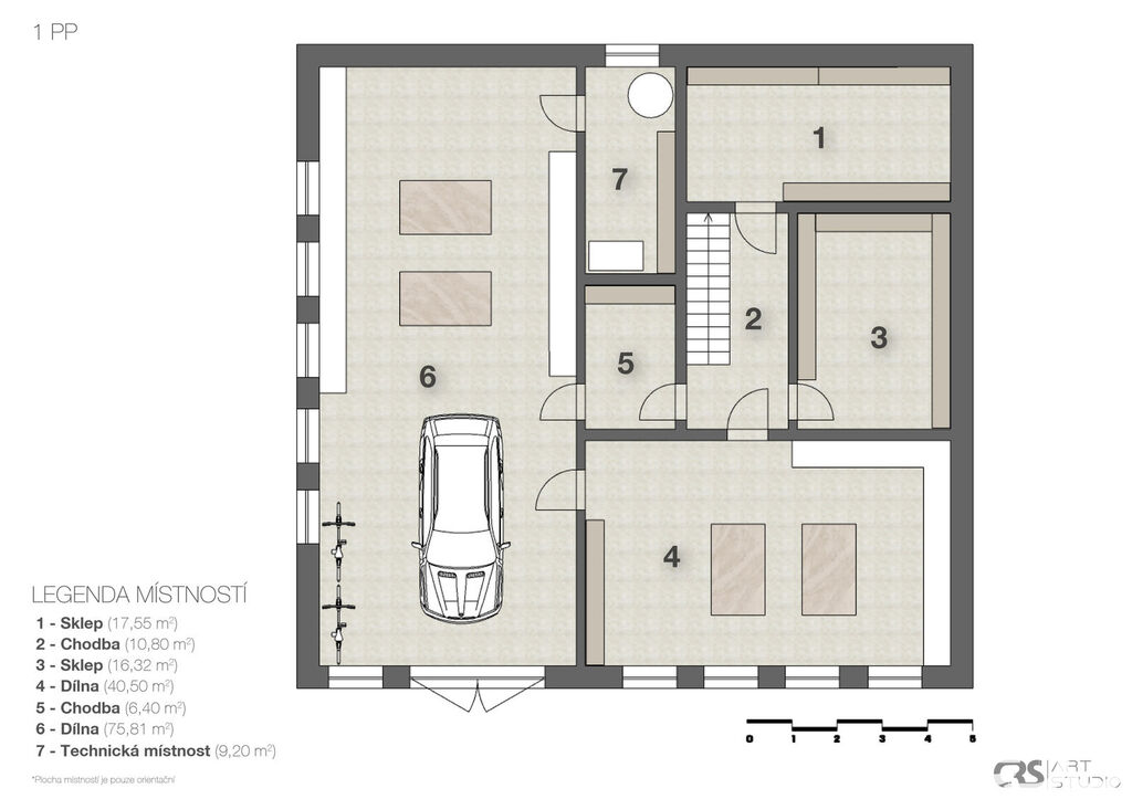Ve spodní části domu je potřeba udělat kompletní rekonstrukci, v současné chvíli se jedná o prostory dílny, technické místnosti a sklepů. Díky této fázi, ve které se nemovitost nachází, máte možnost si vše upravit přesně podle svých představ.