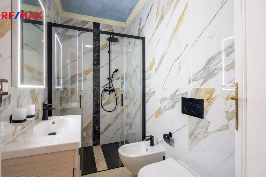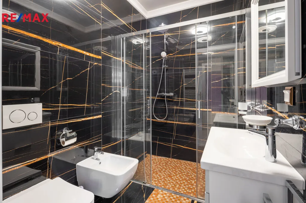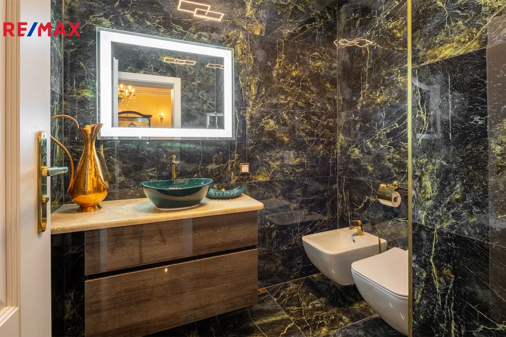 První patro je soukromou zónou domu. Hlavní ložnice s vlastní koupelnou a šatnou vám zajistí maximální komfort. Z prostorného balkonu, který je přístupný z hlavní obývací části, si můžete vychutnat klidné chvíle s výhledem na Karlovy Vary a hory.