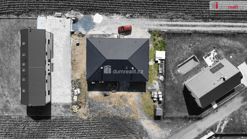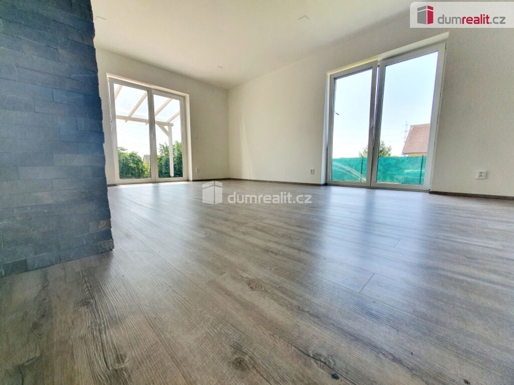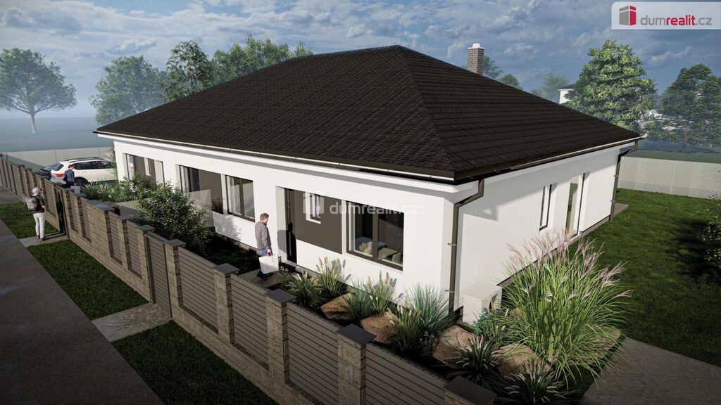 prodej rodinného domu o dvou bytových jednotkách v obci Malý Újezd-Vavřineč. Obě jednotky jsou dispozičně řešené, jako 4+kk a každý disponuje užitnou plochou 127 m² a pozemkem o rozloze cca 465 m². Ve fotogalerii najdete vizualizaci domu a poté nafocený vzorový dům z jiného projektu. Předpokládané nastěhování je ke konci roku 2025. Dům je dispozičně řešen následovně: přes zádveří se dostaneme na samostatnou toaletu a dále do prostorné chodby, odkud jsou přístupné všechny místnosti. Tedy dva pokoje, ložnice, šatna, koupelna s toaletou a důmyslně řešený obývací pokoj s kuchyňským koutem (33 m² s krbem), kde je navíc k dispozici spíž. Z obývacího pokoje a ložnice je přímý vstup na krytou terasu. Dům se vyznačuje dostatkem soukromí a vysokými standardy. Dům bude připojen na vodovodní řád a spádovou kanalizaci. Plyn zde není. Pokud si přejete bydlet v klidu na venkově, přesto s dobrou dostupností do Prahy, pak je tento dům právě pro Vás. Obec spadá do správního obvodu obce s rozšířenou působností Mělník.