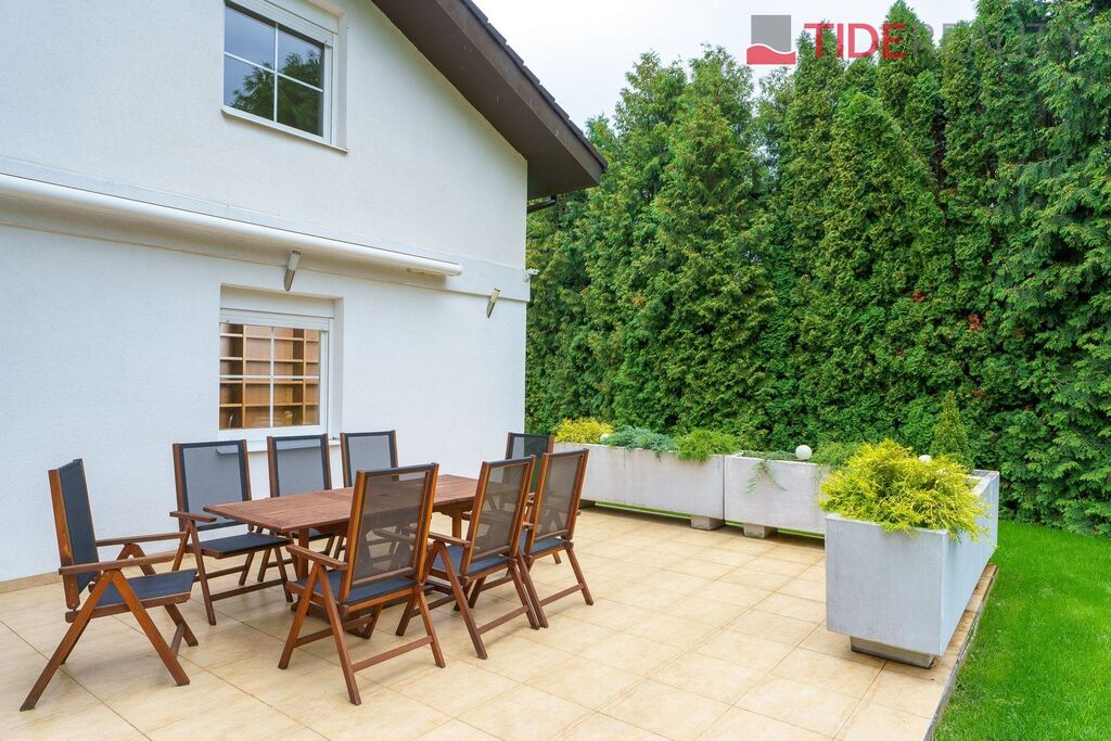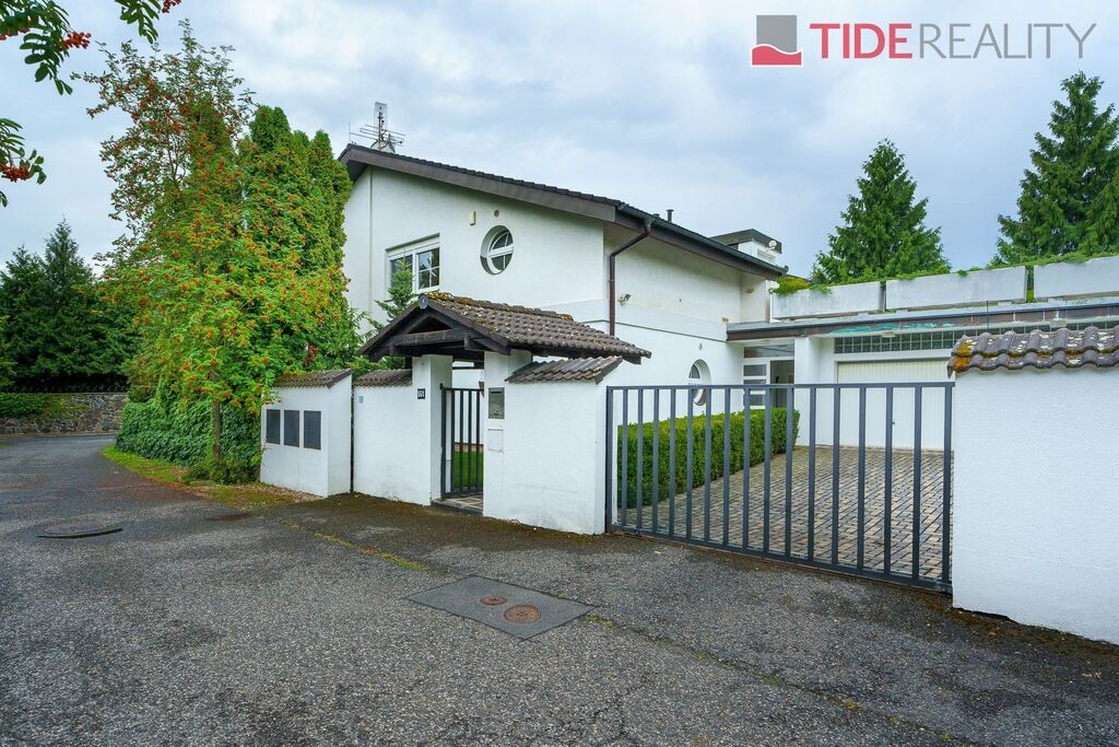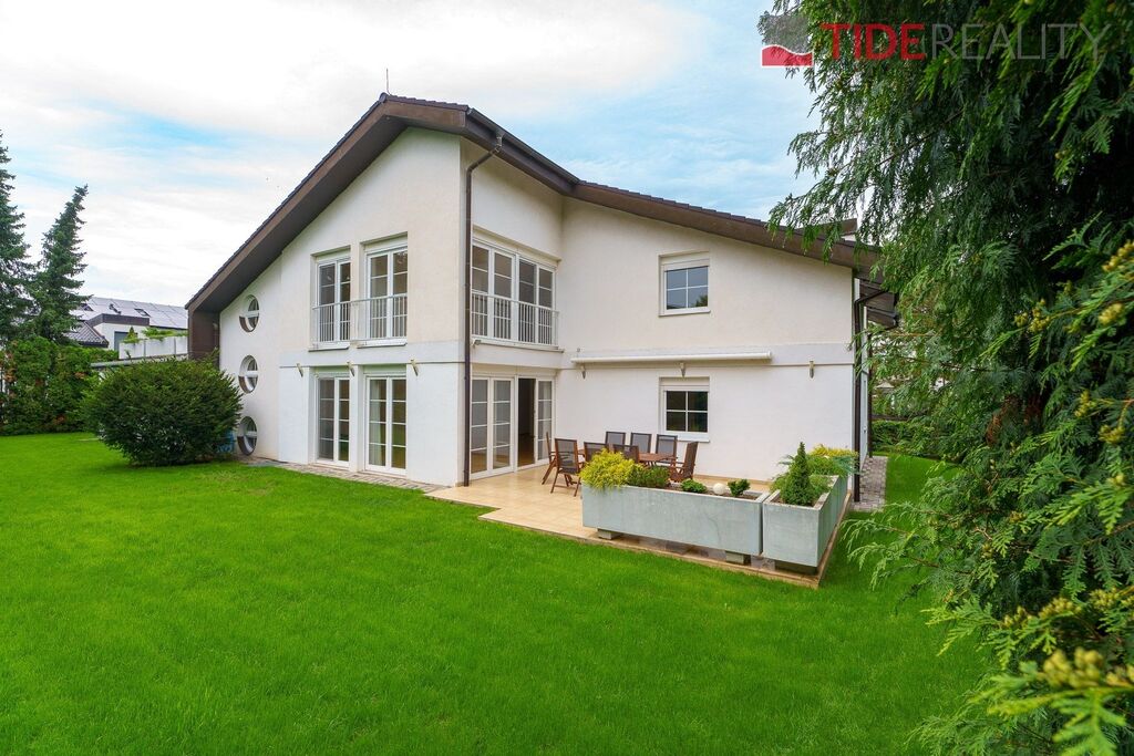 Nabízíme ke koupi velmi prostornou vilu, na nádherném a jedinečném místě Průhonic v sousedství Průhonického parku. Dům obklopený vzrostlou zelení zajišťující naprosté soukromí může být díky své velikosti i dispozici využívaný i k vícegeneračnímu bydlení. Dům se zastavěnou plochou 283m2, pečlivě udržovanou vzrostlou zahradou o velikosti 717m2, má užitnou plochu 416m2, která je rozložena ve třech podlažích. 1.PP je skladovací/úložný prostor o velikosti 60m2, v 1.NP (197m2) se nachází jednak dvougaráž s přímým napojením na dům a dále především velkoryse řešený obývací pokoj propojený s kvalitní a plně vybavenou kuchyní na celkové ploše 72m2 s východem na jihozápadní terasu a zahradu, dále 2 prostorné pokoje, 2 koupelny, samostatné WC, kotelna(plyn) pro toto podlaží.