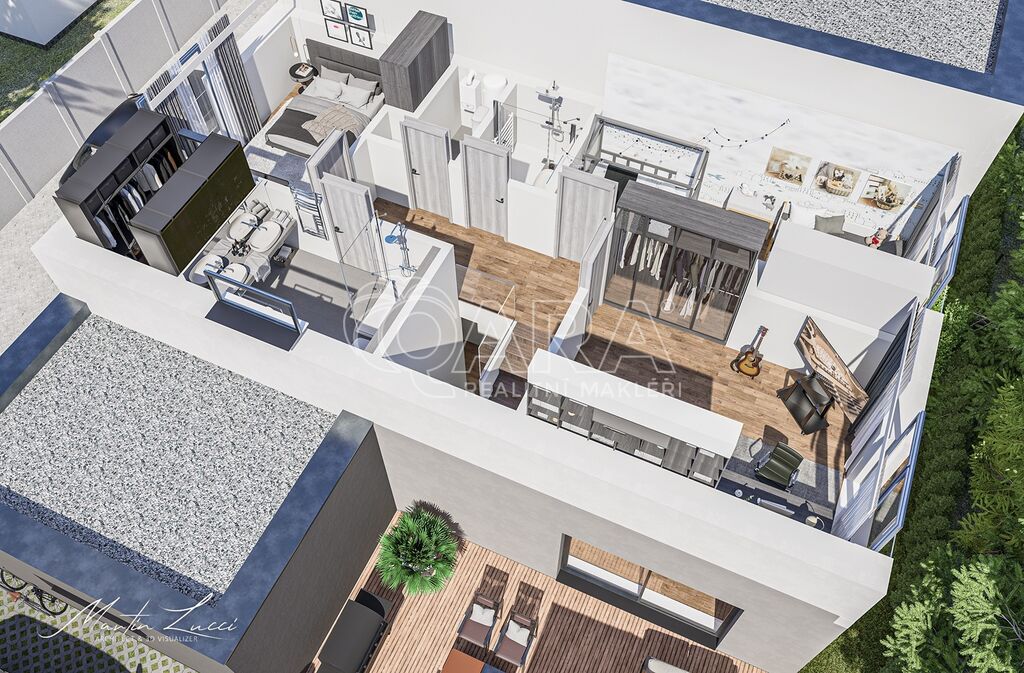 moderní klidné bydlení v nízkoenergetické novostavbě s architektonicky navrženým a detailně promyšleným dispozičním řešením v atraktivním designu.