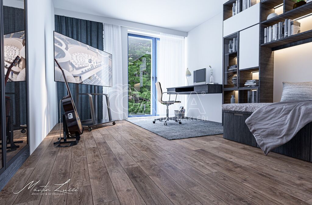 Čeká na vás elegantní design koupelen, dveří a podlah, trendové materiály, podlahové vytápění, venkovní automatické rolety a určitě oceníte také šestikomorové provedení oken a dveří se zasklením tepelně izolačními trojskly včetně oblíbených HS portálů.