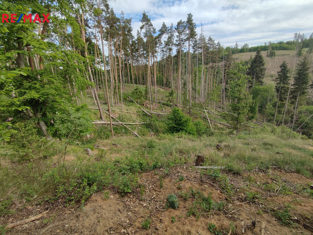 Pozemek se nachází ve svahu a je obklopený dalšími lesy a z horní strany obecní polní cestou a poli. V horní části pozemku blíže k cestě roste několik zdravých stromů, zbývající většinová část pozemku vytěžena.
