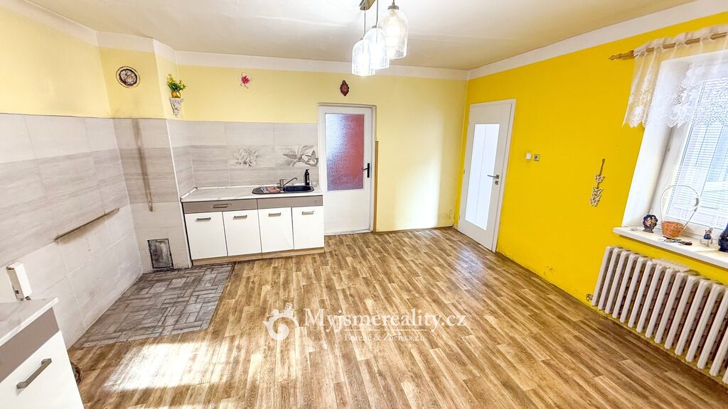 Nemovitost si vyžaduje rekonstrukci a čeká zájemce, kteří hledají klidné místo na pohodové bydlení s prostornou zahradou.