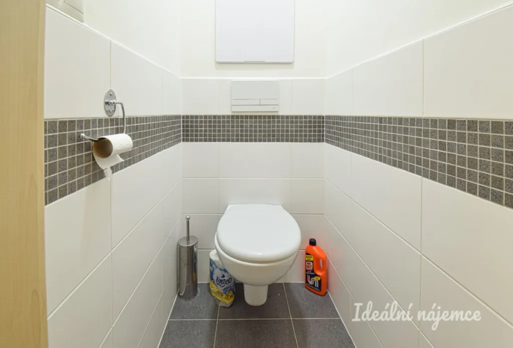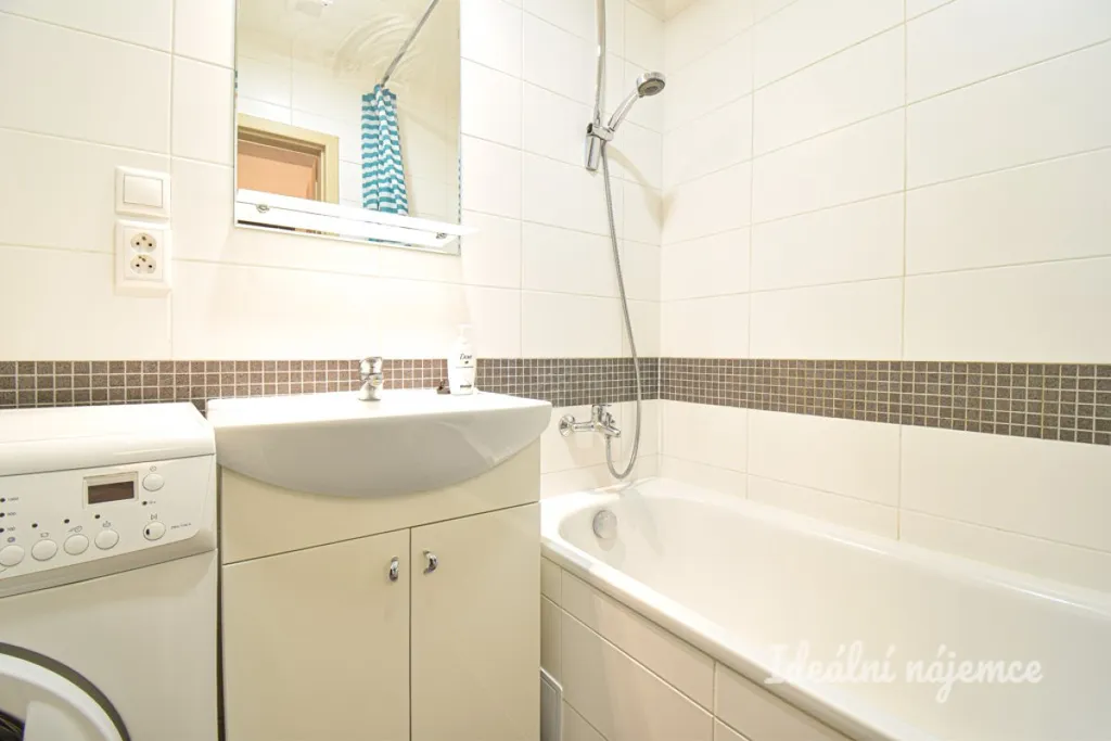 Součástí bytu je samostatné wc, koupelna s vanou a pračkou, obývací pokoj s kuchyňským koutem, veškeré vybavení zůstává.
