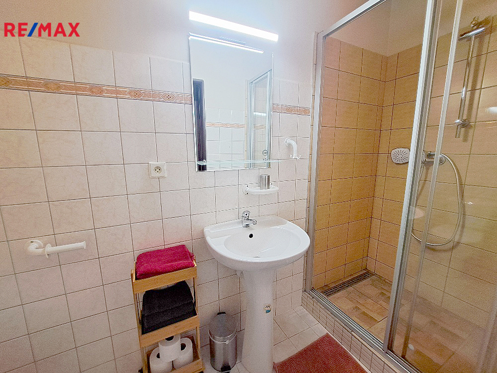 Součástí pronájmu je plně vybavená kuchyňská linka, koupelna se sprchovým koutem a prostorný pokoj kompletně zařízený nábytkem, jak je vidět na fotografiích. Z pokoje je vstup na balkón. Byt je orientován na JZ.