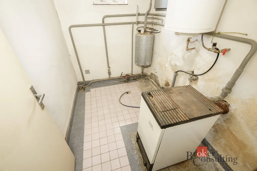 V domě je prostorný sklep, mnoho místností sloužících jako úložné nebo technické prostory a parkování je možné buď ve dvou garážích nebo přímo u domu.