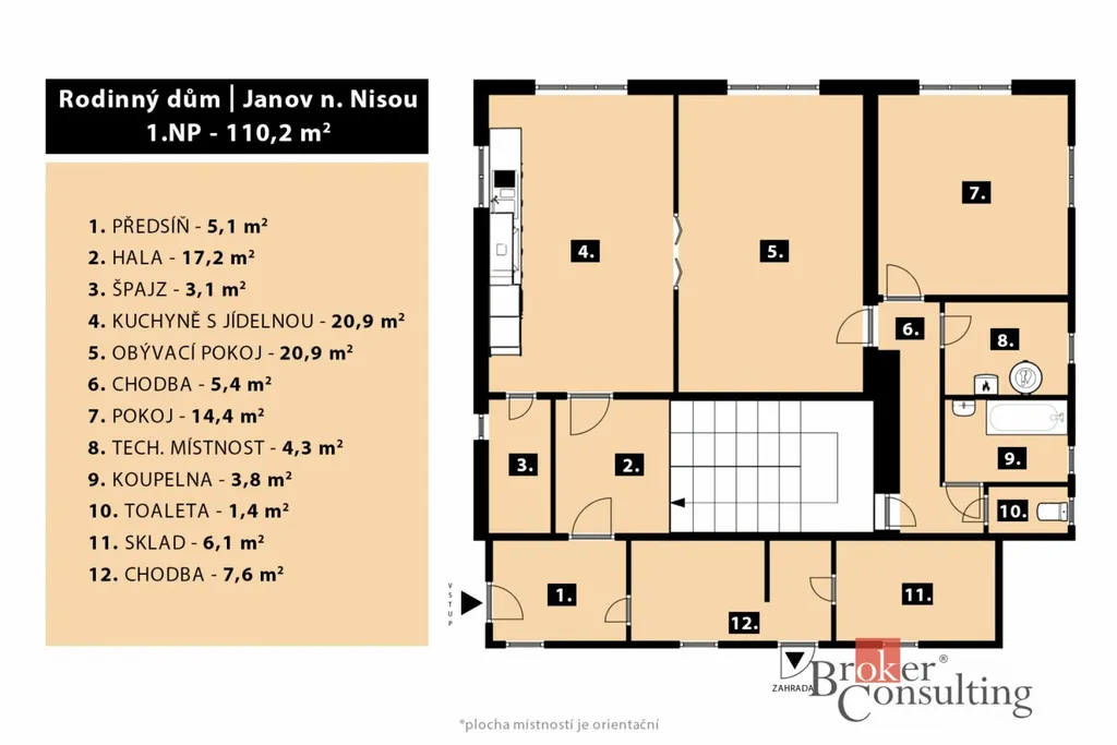 V 1. nadzemním podlaží se nachází byt o dispozici 3+kk a je zde mnoho úložných prostor (sklad, špajz, technická místnost). Dispozice bytu si samozřejmě může nový majitel změnit dle svých potřeb.