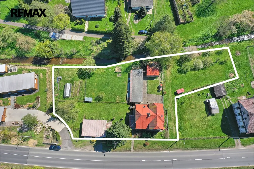 Nemovitost stojí na rozlehlém pozemku o velikosti 2 377 m², který nabízí nejen krásnou zahradu, ale i dvojgaráž, samostatnou saunu a dílnu se skladovacími prostory. Pozemek je stavební a existuje možnost jeho rozdělení, takže zde lze vybudovat další rodinný dům. Na jeho hranici protéká potůček, který dotváří poklidnou a jedinečnou atmosféru tohoto místa. Díky své rozmanitosti je dům ideální pro vícegenerační bydlení, rekreaci, nebo jako investice do apartmánového provozu.