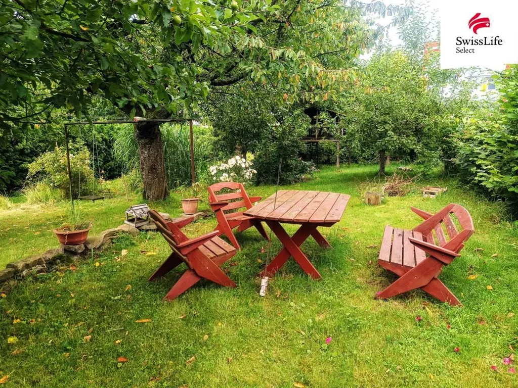 Udržovaná zahrada (celková plocha pozemku 959 m) je osázená ovocnými a okrasnými stromy, keři a bylinkovým záhonem. Součástí zahrady je dětský stromový domek, zahradní domek a sklad s dílnou. Prostředí nabízí klid, soukromí a pohodu zejména v letních měsících.