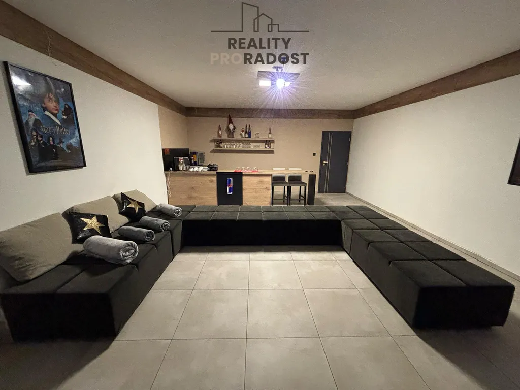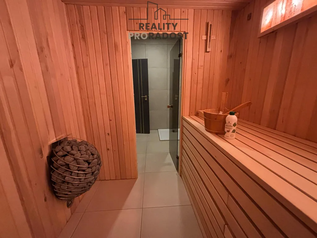 Dále v penzionu máme jeden společenský apartmán, který disponuje svojí kompletně zařízenou kuchyní, obývacím prostorem a společenským prostorem s barem. Tuto společenskou část využijete ke sledování různých sportovních akcí, místnost pro děti jako hernu či jen ke společnému strávenému času s ostatními. Z tohoto apartmánu máme zajištěný vstup do Finské sauny s himalájskou solí která je navržena pro co nejvíce záporných (zdraví prospěšných) iontů a odpočinkové místnosti se sprchou. Samostatné wc s bidetem je umístěno na chodbě.