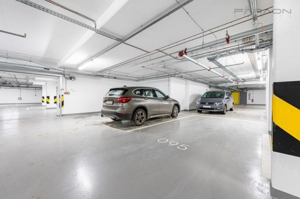 Dispozici slunného bytu 2KK zahrnuje otevřený koncept obývacího pokoje s kuchyní a přímým vstupem na terasu, další samostatný pokoj, vstupní chodba, prostorná koupelna se sprchovým koutem, úklidová místnost - místnost pro pračku, sušičku, sklep a parkovací místo.
