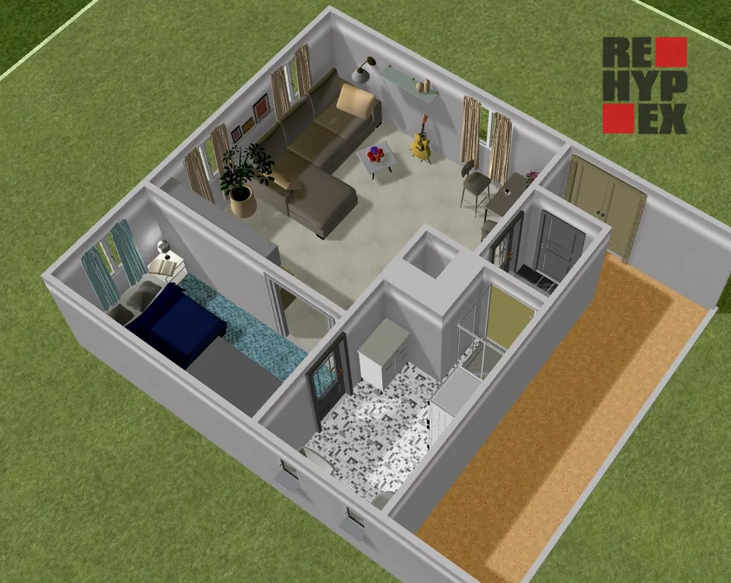 Dům je obsypán štěrkem, vytvořena drenáž, nopová folie, schody, základní zahradní úprava. Odpad je řešen novou ČOV. Byt může být osazeny krbovými kamny.