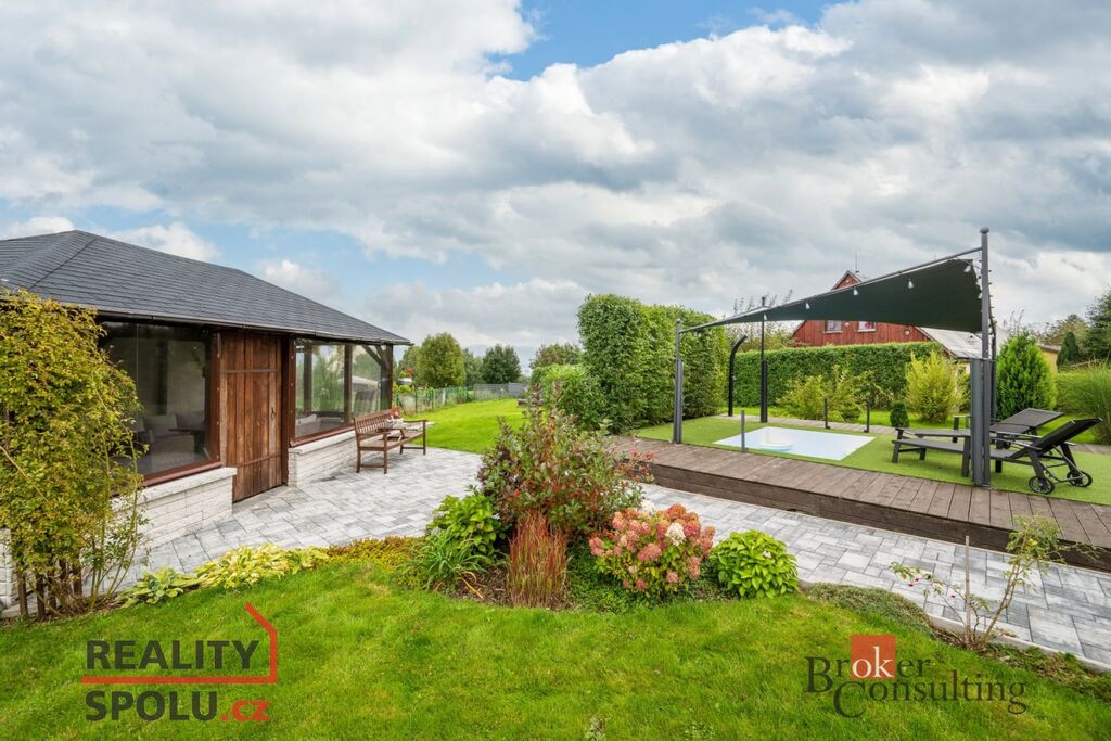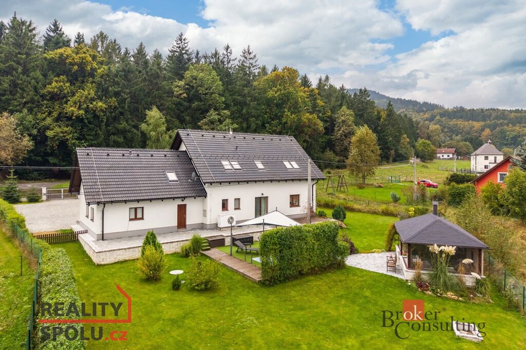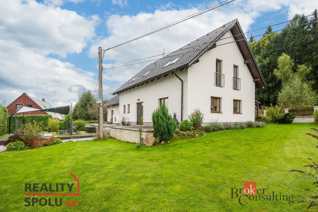 Součástí tohoto domu je prostorná dvougaráž s dílnou a půdním prostorem nad garáží. Velmi udržovaná zahrada s terasou nabízí krásný výhled do okolní krajiny a lesa. Na pozemku najdete vyhřívaný bazén s vířivkou, zděný zahradní domek určený pro posezení a grilování, skleník, ohniště, zimní zahradu a venkovní parkovací stání.
