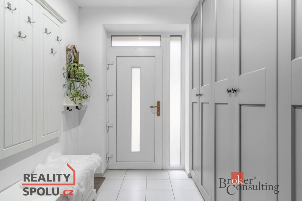 V přízemí domu naleznete vstupní chodbu s úložnými prostory, ložnici, prostorný a světlý obývací pokoj s výstupem na dvě venkovní terasy. Dále zde najdete moderní kuchyňský kout s ostrůvkem a jídelnu. Kuchyňská linka je vybavena značkovou mikrovlnou a vestavnou troubou, varnou deskou se zabudovanou digestoří, myčkou a lednicí. Součástí přízemí je ještě úložný prostor pod schody a koupelna se sprchovým koutem a WC.