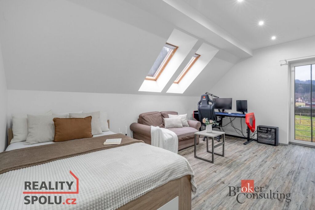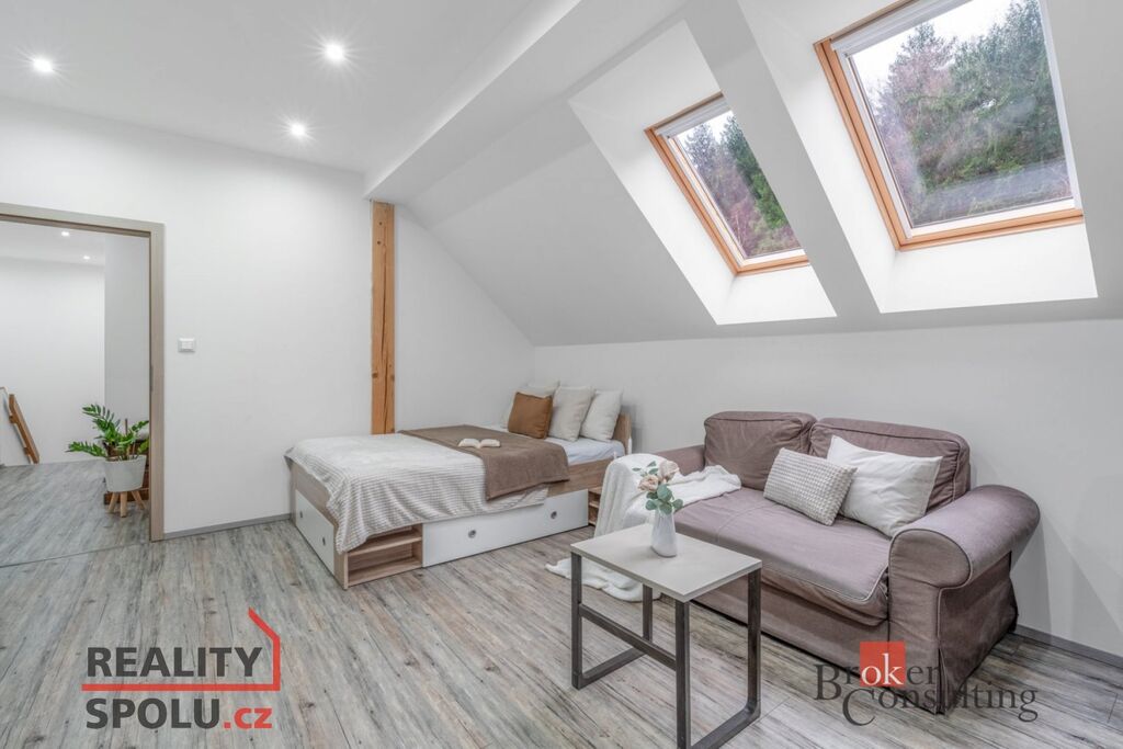 Dispozičně je nemovitost řešena jako 5+kk s obyvatelným půdním prostorem cca 40m2. Je ideálním řešením pro rodinu s dětmi. Nabízí velký prostor, dostatečný klid, soukromí, blízkost přírody a s výbornou dopravní dostupností do centra Liberce. Díky své dispozici a velikosti je možnost přestavby domu na třígenerační bydlení.