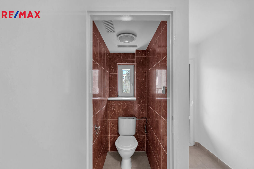 1. NP: Komerční prostor (80 m²) s výlohou a samostatným vstupem z ulice. Dispozice zahrnuje hlavní místnost, malý sklad a toaletu. Vytápění elektrickými přímotopy. Ideální pro obchod, kancelář či jiné podnikatelské využití.