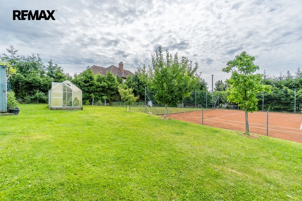 Dům o užitné ploše 420 m² stojí na pozemku o velikosti 2 339 m² a díky promyšlenému uspořádání je ideální také pro vícegenerační bydlení. Zahrada nabízí bazén, relaxační zóny a antukový tenisový kurt, což vytváří výjimečné zázemí pro rodinný život, sport i odpočinek.